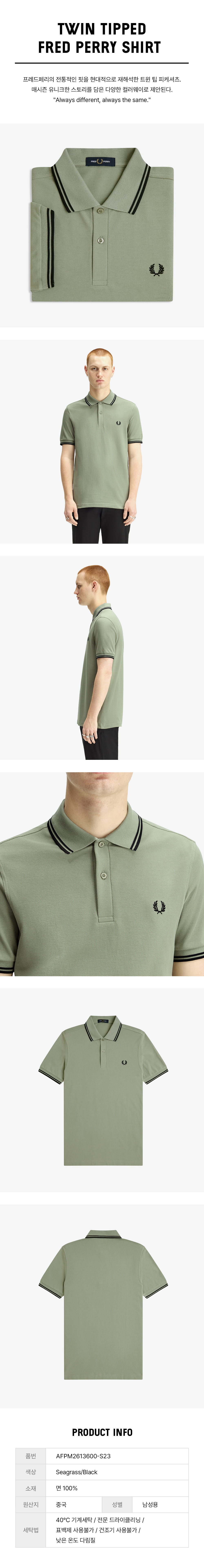 프레드페리 M3600 트윈 팁 프레드페리 셔츠 시그래스 블랙