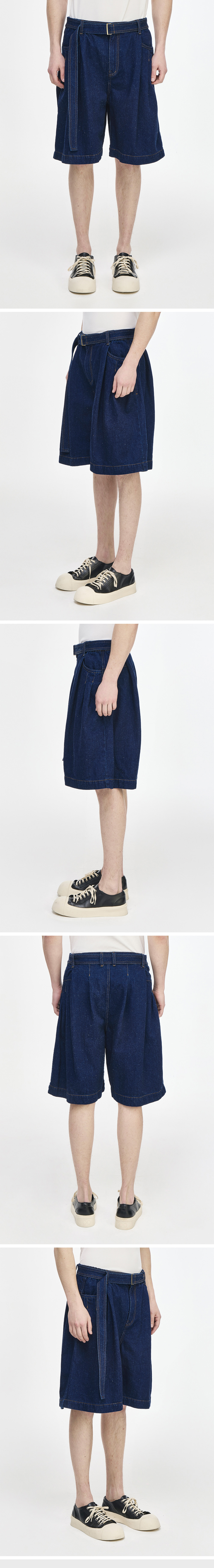 - SONGZIO 컬렉션 EDGEFOLD VOLUME DENIM SHORTS - 조직감이 돋보이는 데님 패브릭 - 전후면 턱과 턱 고정 스티치 디테일로 입체적인 실루엣 연출 - 허리 E-BAND 구성과 사각링 제원단 벨트 디테일 - 와이드 실루엣 FABRICATION MADE IN KOREA STYLE CODE SI3PT722IN