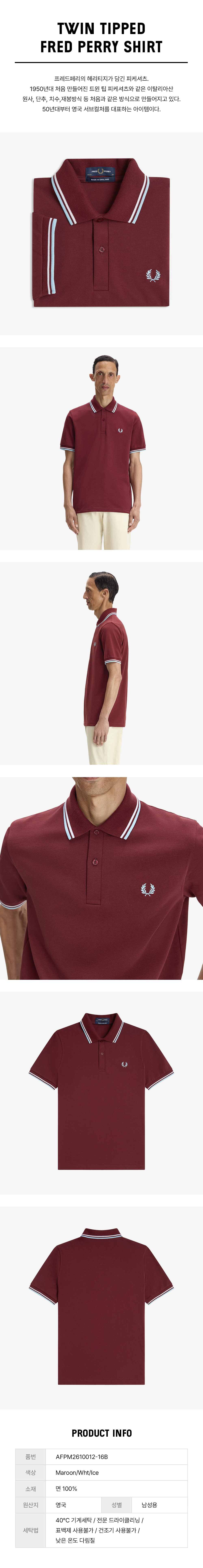 프레드페리 M12 트윈 팁 프레드페리 셔츠 마룬 화이트 아이스