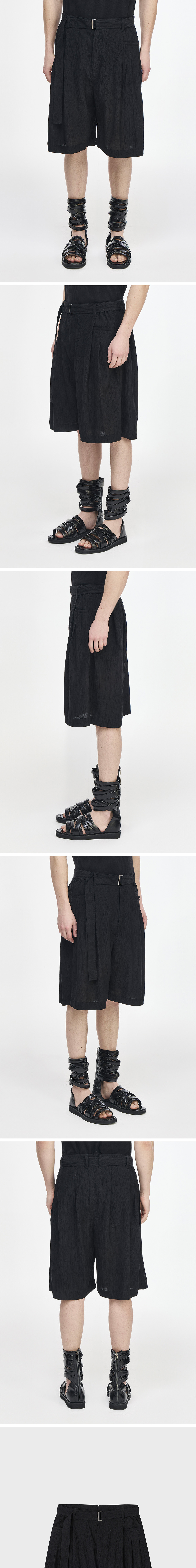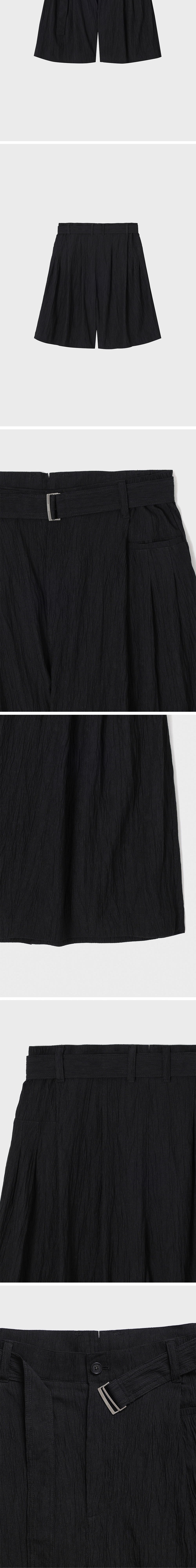 - SONGZIO 컬렉션 라인 EDGEFOLD VOLUME SHORT - 크링클 가공된 린넨 라이크 신세틱 패브릭 - 전, 후면 볼륨감 있는 멀티 턱 입체 패턴의 팬츠디자인 - 제원단 벨트 디테일 - 허리 사이드 E-BAND - 볼륨 와이드 숏츠 실루엣 FABRICATION MADE IN KOREA STYLE CODE SI3PT717BK