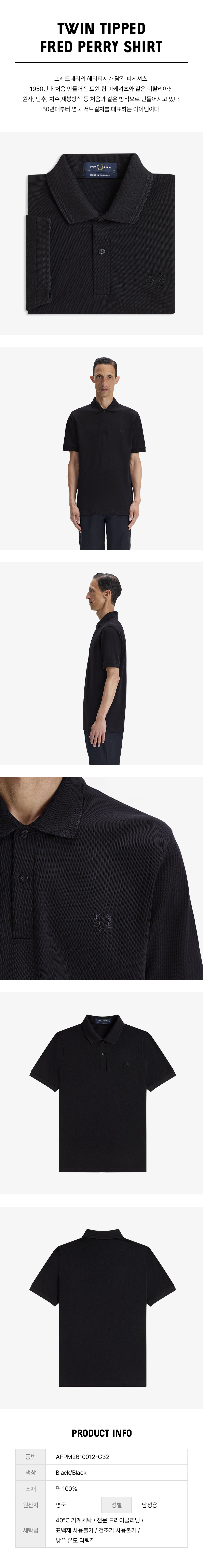 프레드페리 M12 트윈 팁 프레드페리 셔츠 블랙 블랙