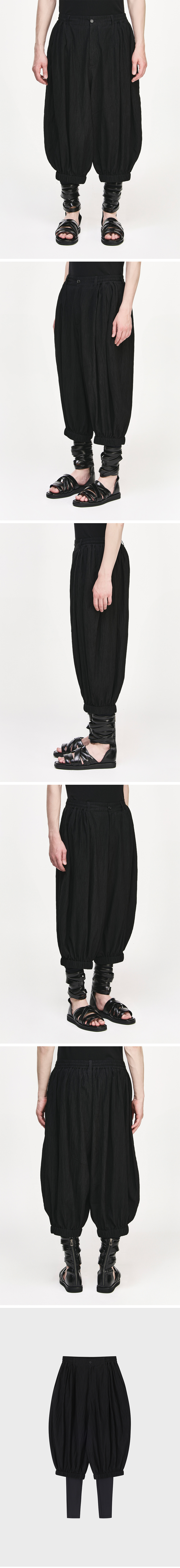 - SONGZIO 컬렉션 BIAS SAROUEL PANTS - 링클 조직감이 돋보이는 신세틱 패브릭 - 탈부착이 가능한 2겹 레이어드 디자인 - 턱과 밑단 E-BAND로 볼륨감 있는 실루엣 연출 - 허리 E-BAND와 히든 스트링 디테일 - 전면 사이드포켓 디테일 - 사루엘 실루엣 FABRICATION MADE IN CHINA STYLE CODE SI3PT732BK