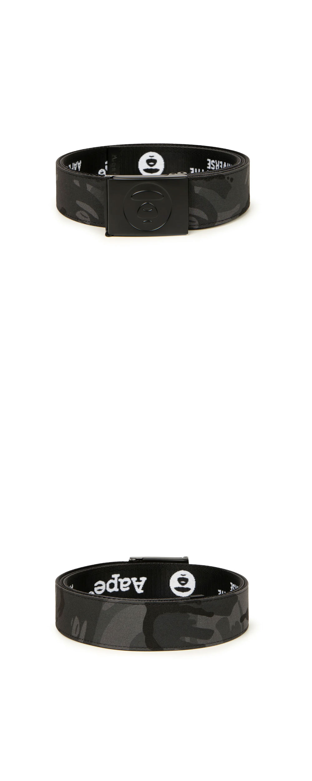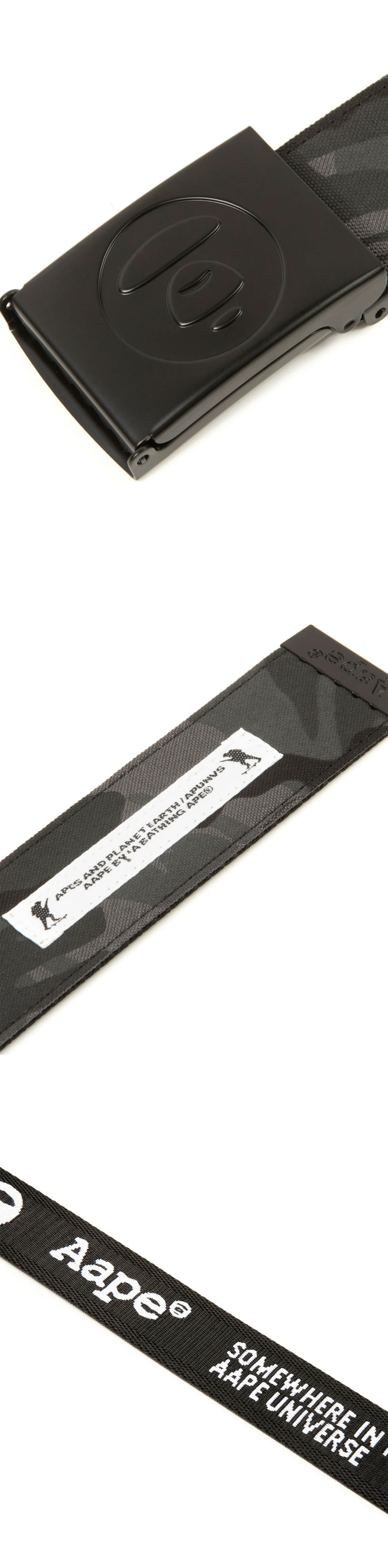 에이프 메인 맨 벨트 블랙입니다. - 카모 패턴과 전술적 미학을 결합 - 엠보싱 로고 디테일 - 사이즈 조절 시스템