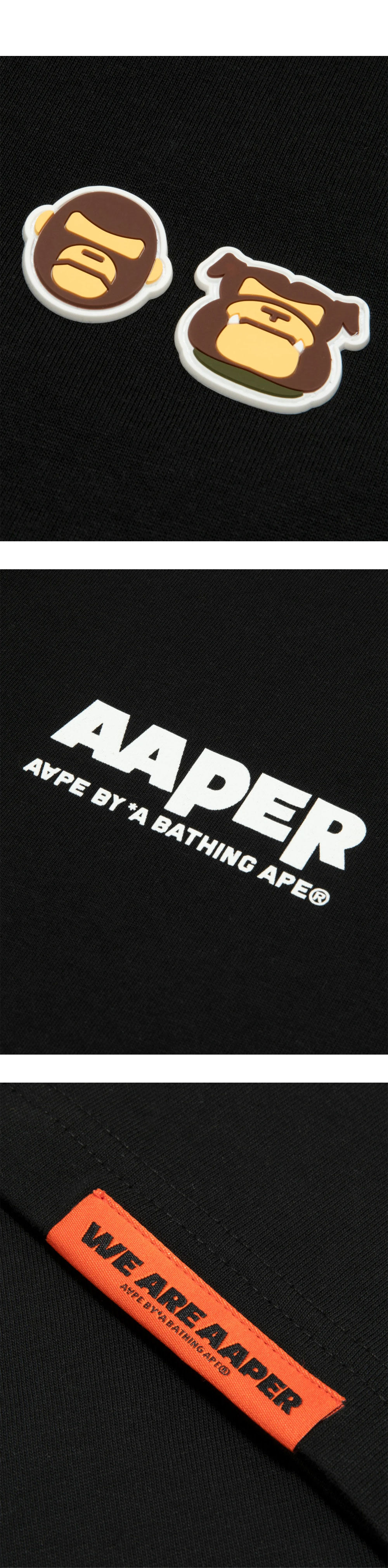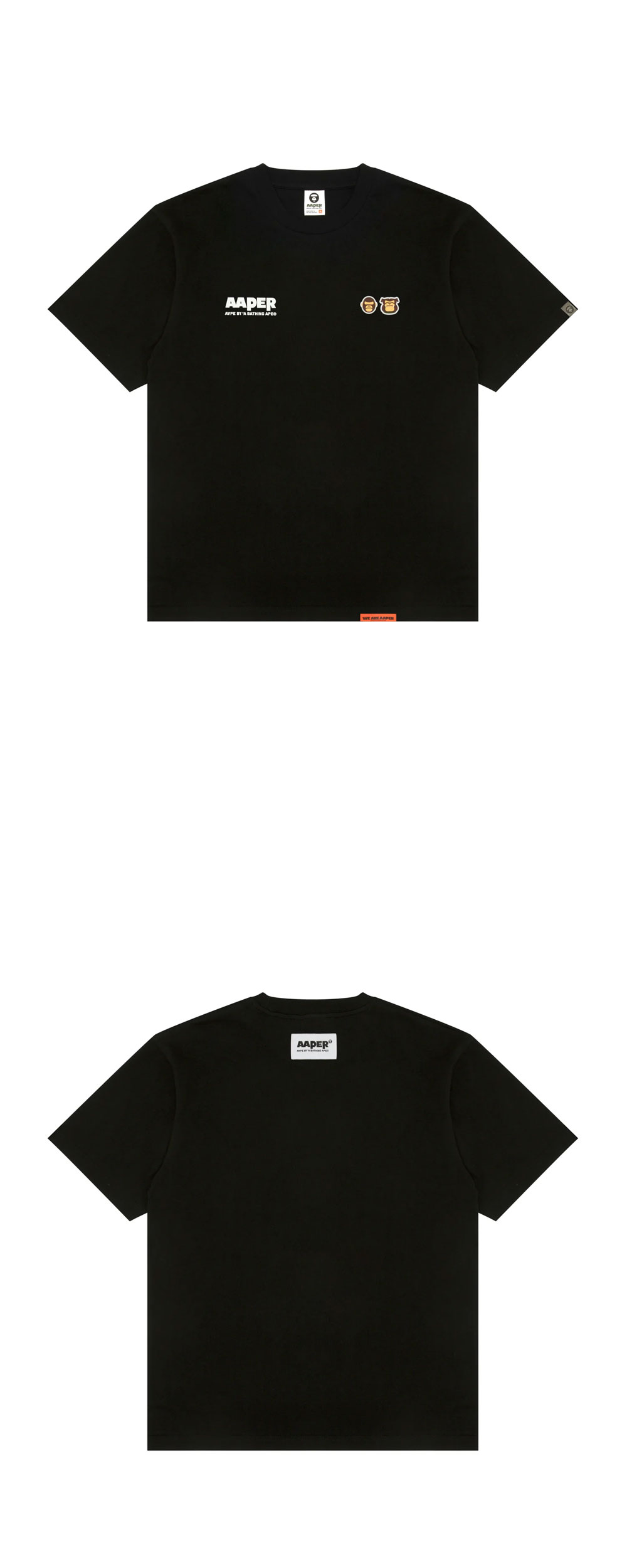 에이프 베이직 에이퍼 티 블랙입니다. - 클래식한 크루넥 디자인 - 가슴 부분 시그니처 로고 패치 디테일 - 여유 있게 떨어지는 박시 핏