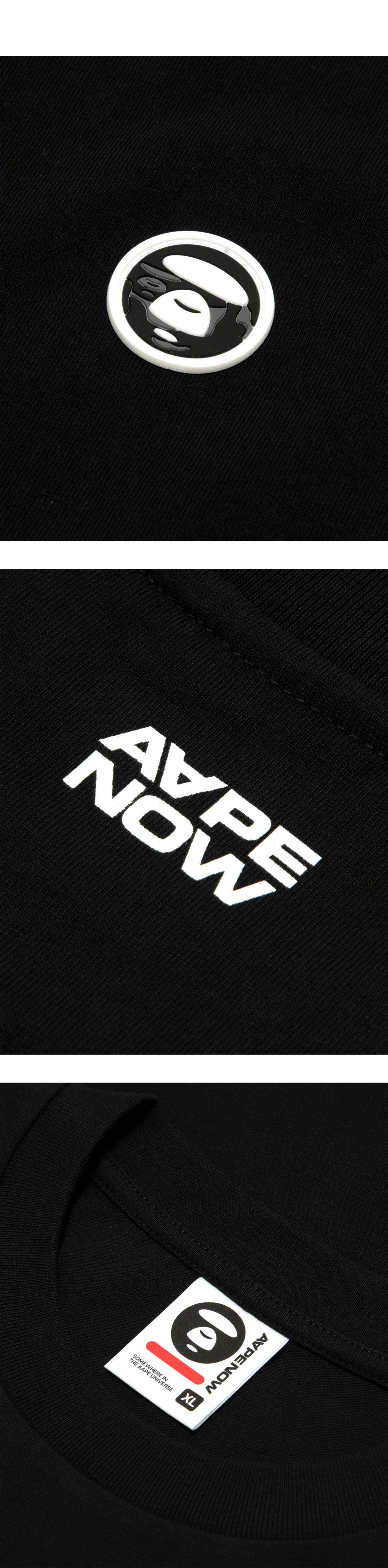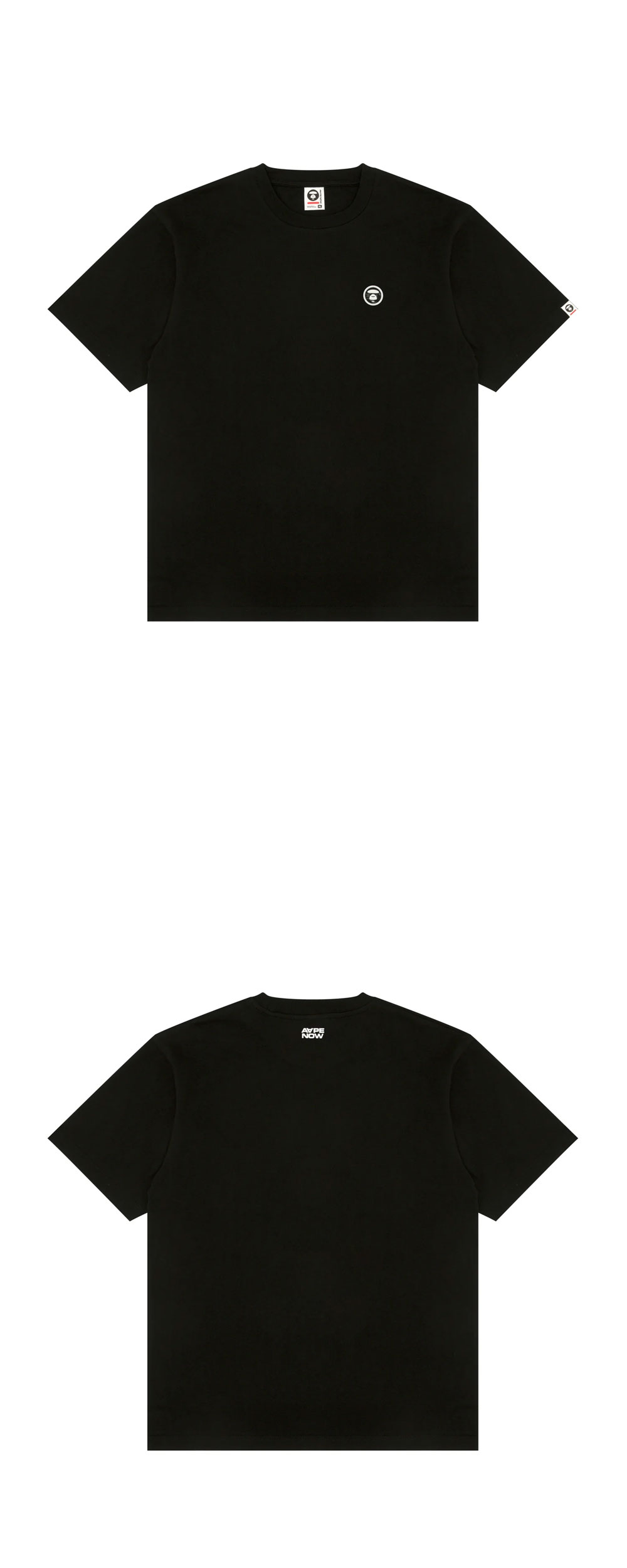 에이프 나우 티 블랙 - 전면 문페이스 로고 패치 디테일 - 여유로운 실루엣의 릴랙스 핏과 기본 크루넥 디자인 - 계절에 상관없이 착용 가능한 고품질 베이직 티셔츠 - 다양한 하의와 매치하기 쉬운 심플한 브랜딩 포인트