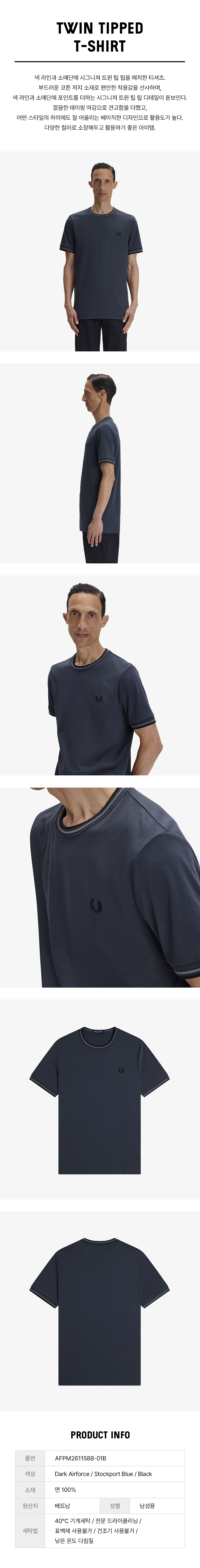 [KREAM 단독] 프레드페리 트윈 팁 티셔츠 다크에어포스 스톡포트블루 블랙