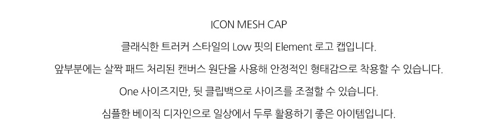 엘리먼트 ICON 메쉬 트러커 캡 모자 (MG13CP017BTL)
