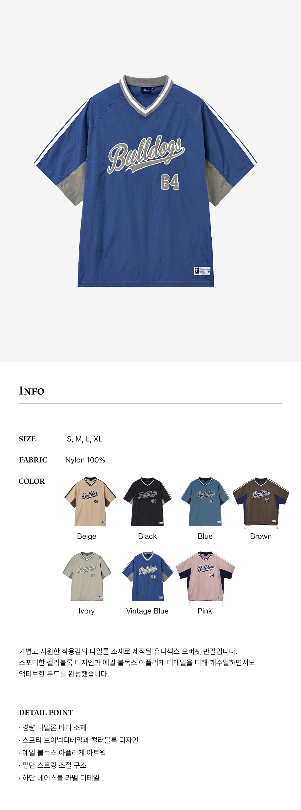 예일 베이스볼 나일론 숏슬리브_빈티지 블루