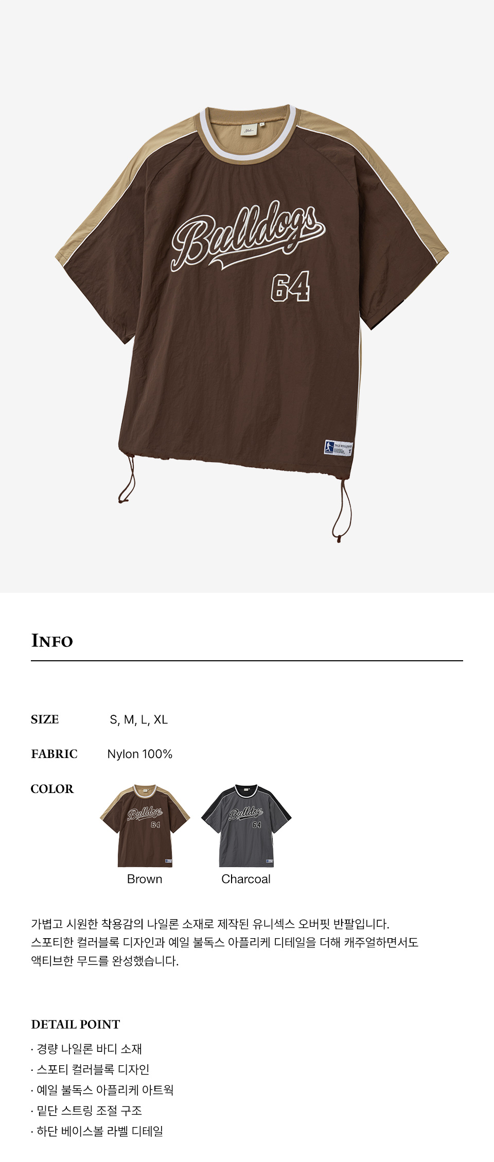 예일 64 불독스 베이스볼 크루넥 나일론 티셔츠_브라운