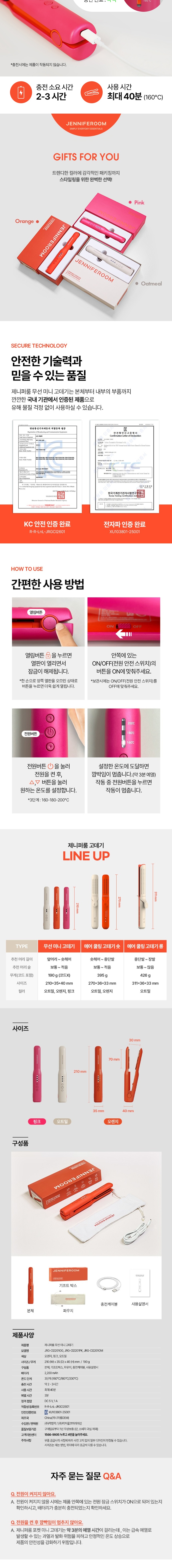 제니퍼룸 포켓 미니 무선 고데기 (3color)