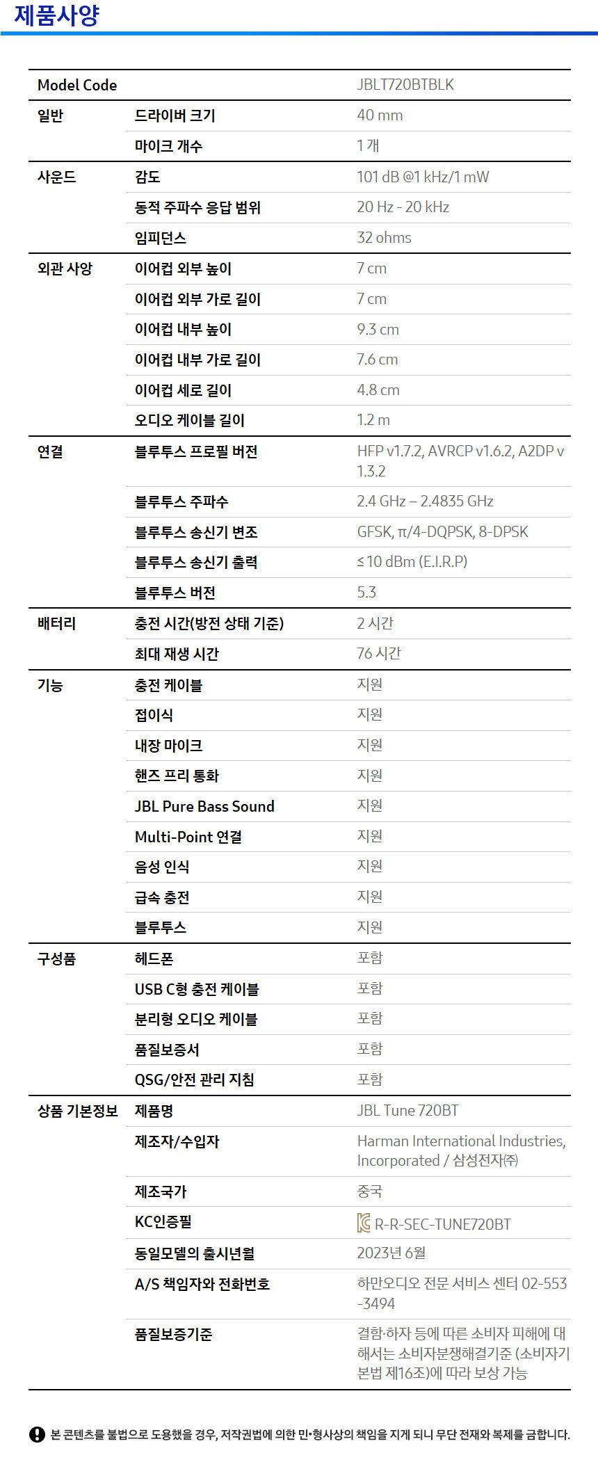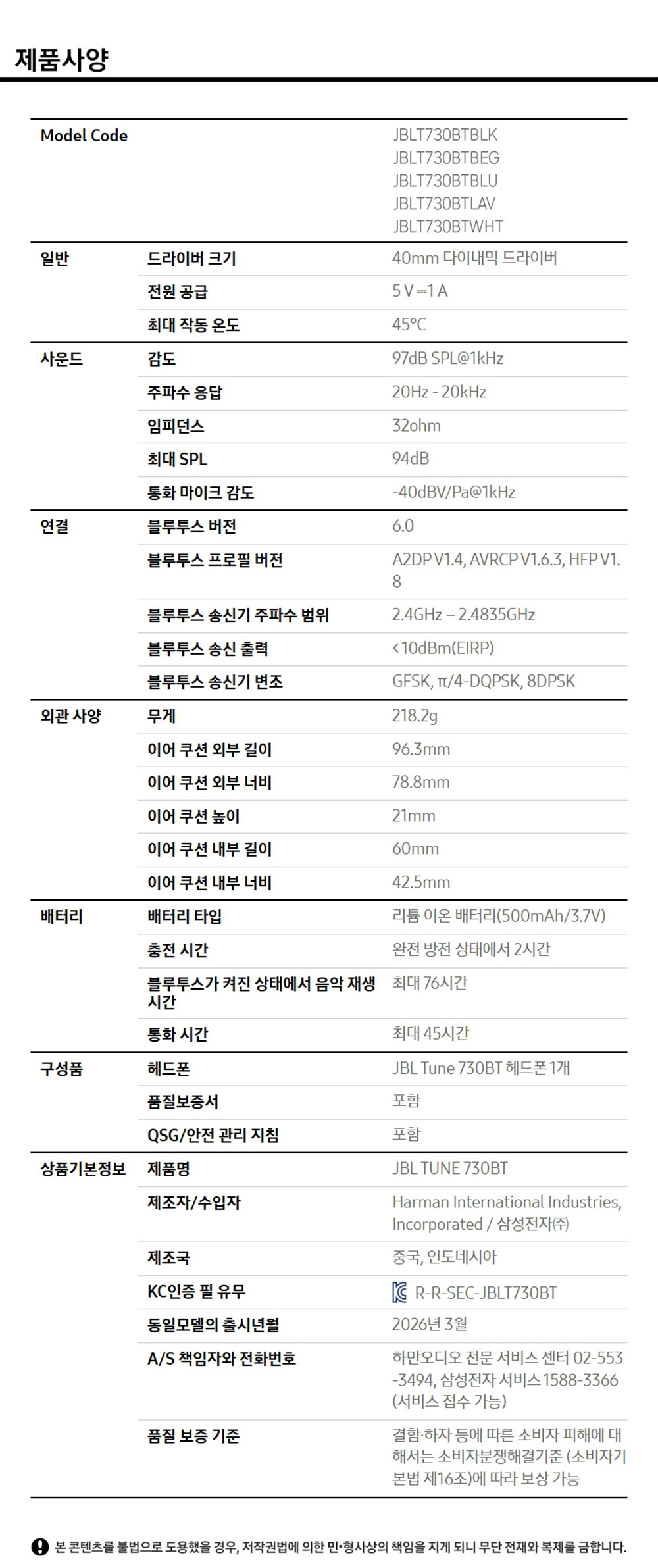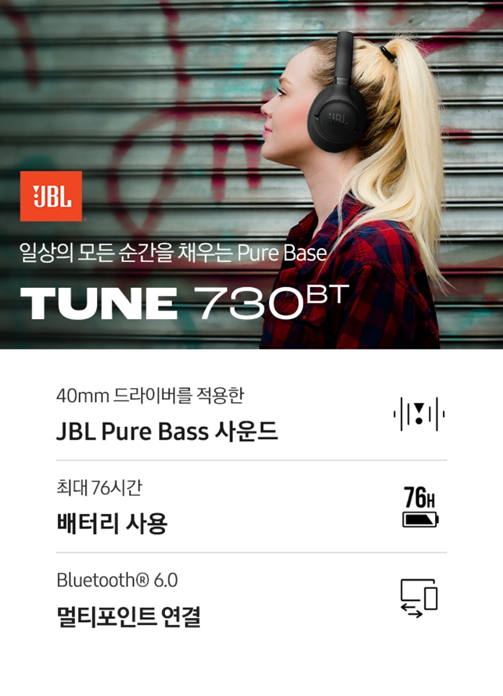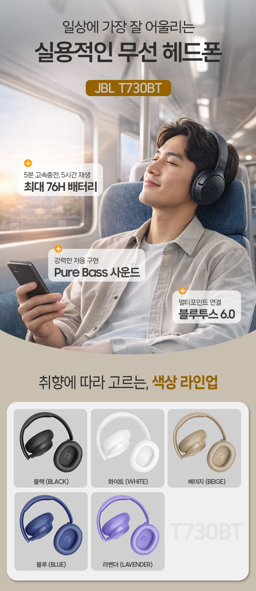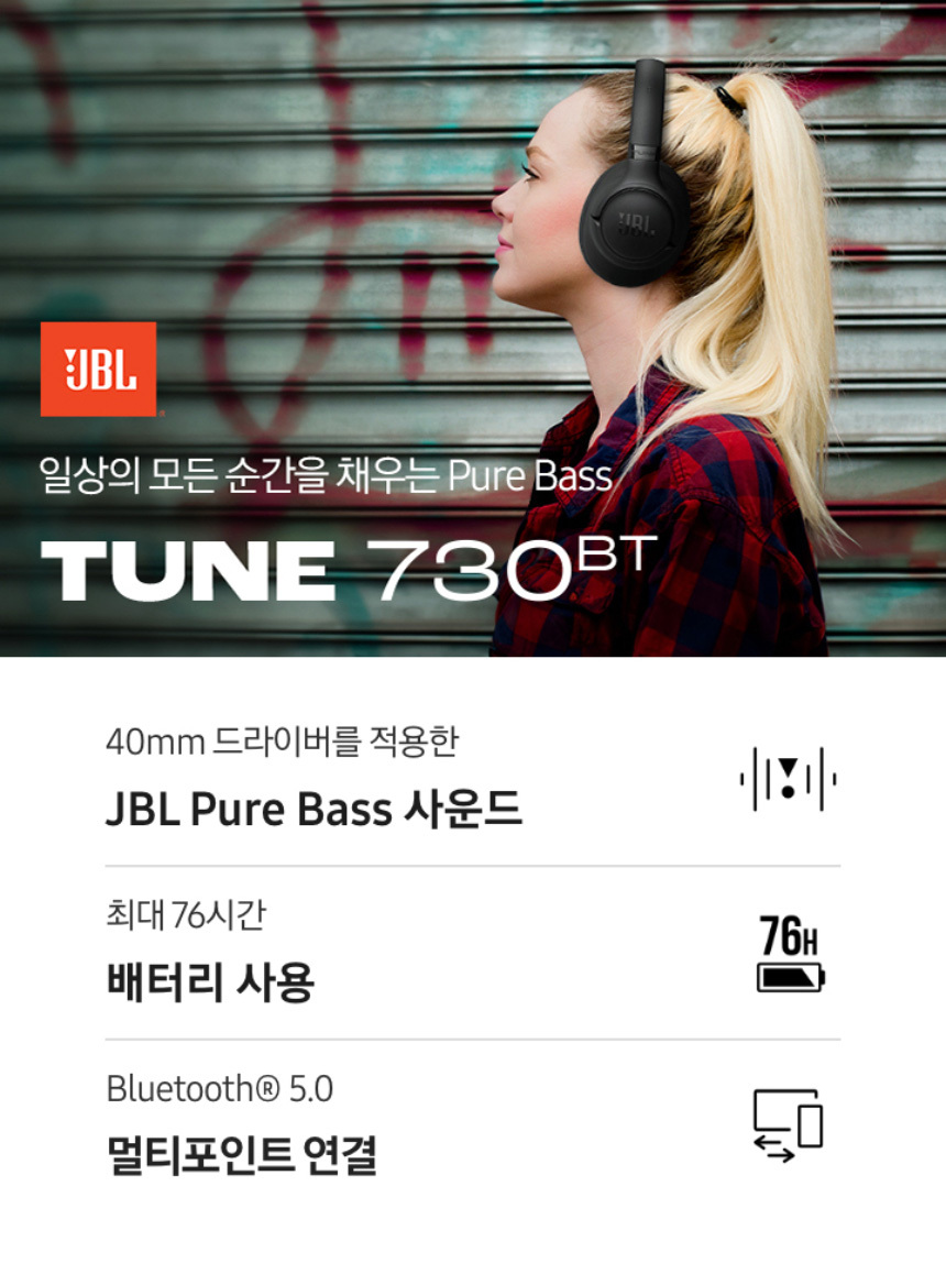 삼성공식파트너 JBL T730BT 무선 블루투스 헤드폰