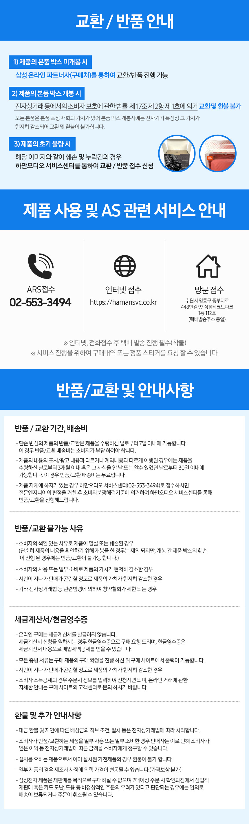 교환 및 반품 안내