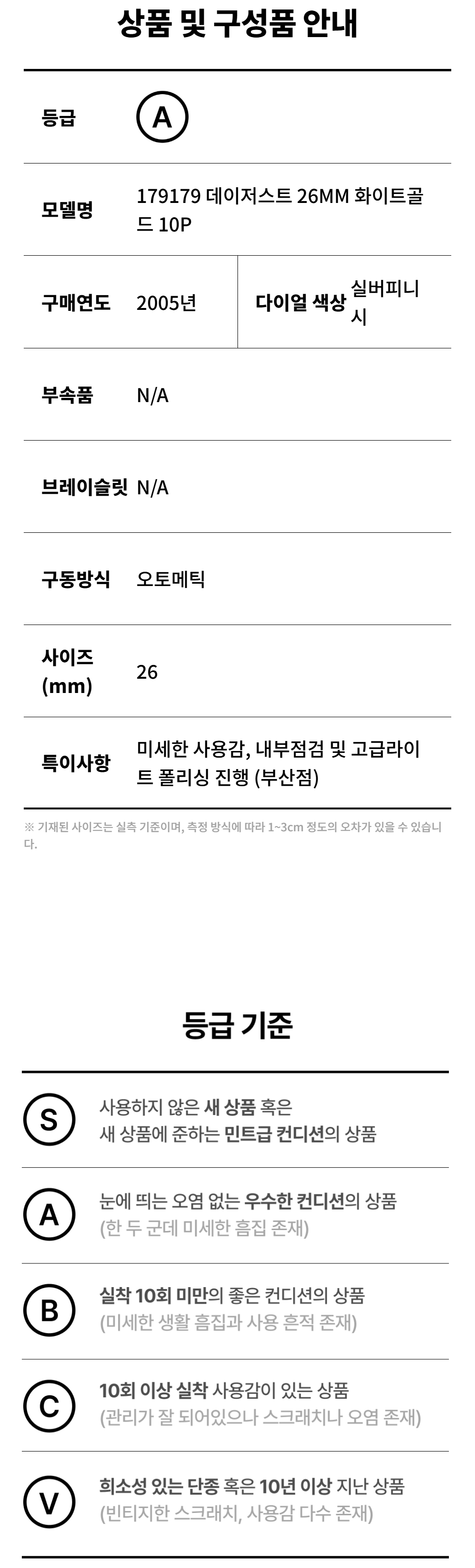 롤렉스 179179 데이저스트 26MM 화이트골드 10P