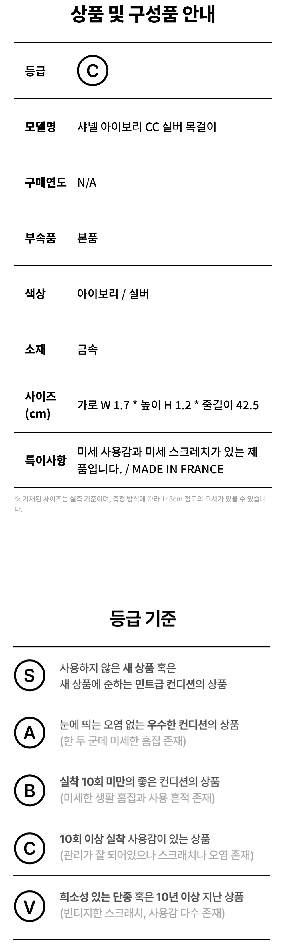 샤넬 아이보리 CC 실버 목걸이 A-B50955