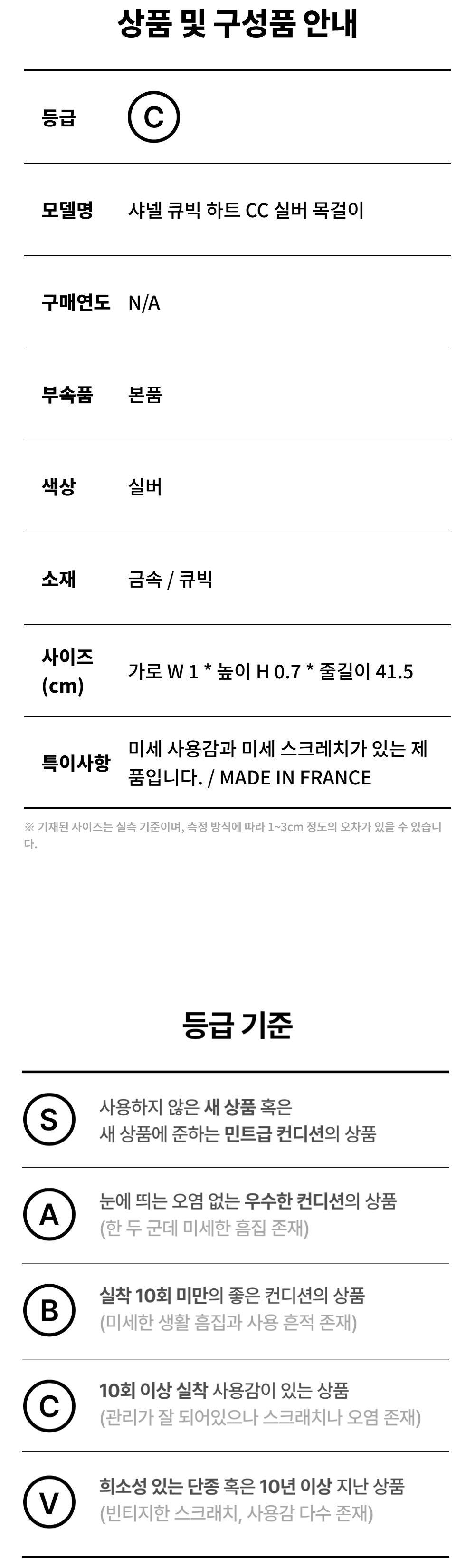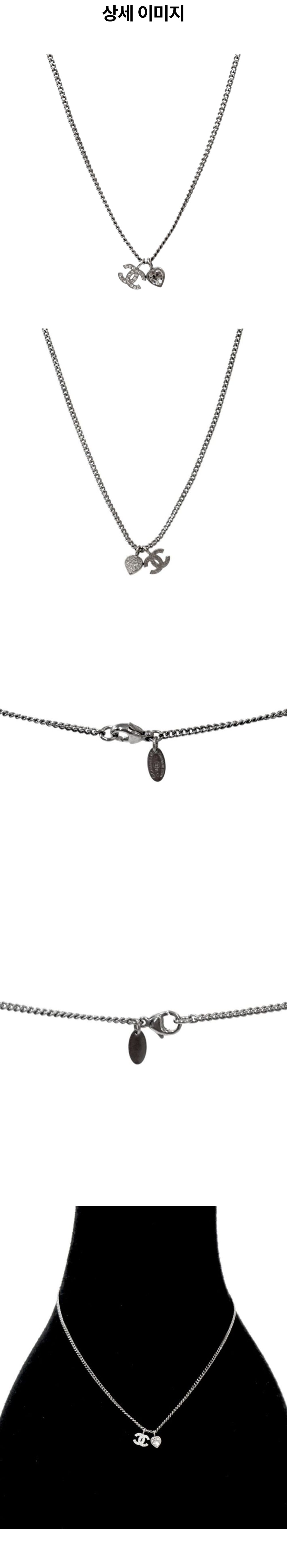 샤넬 큐빅 하트 CC 실버 목걸이 A-B50905