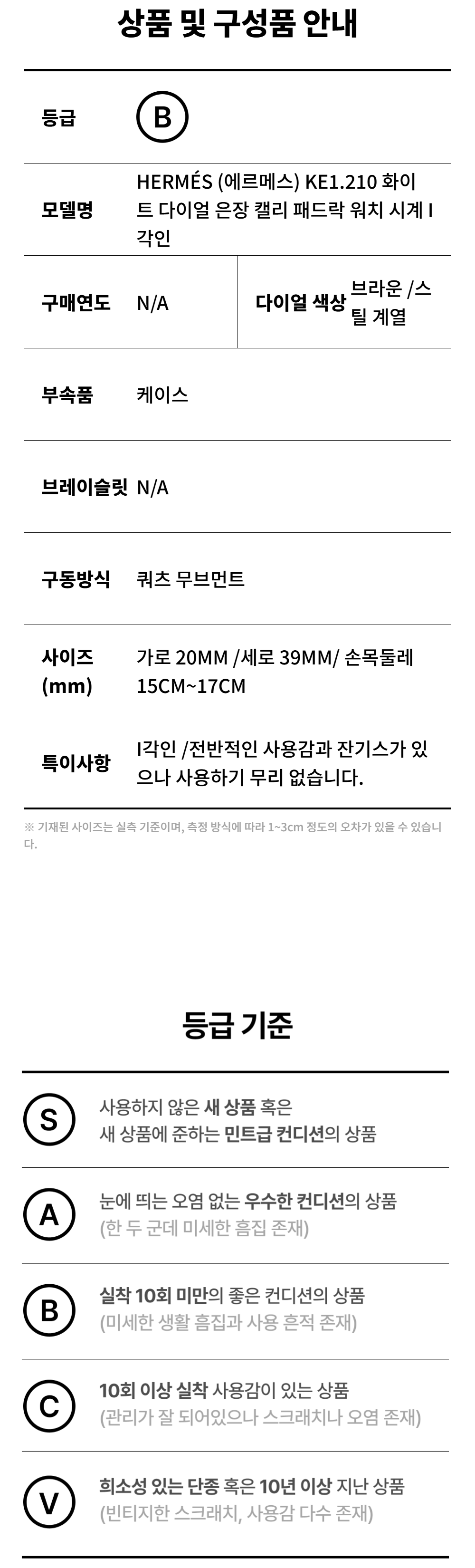 에르메스 KE1.210 화이트 다이얼 은장 캘리 패드락 워치 시계 I각인