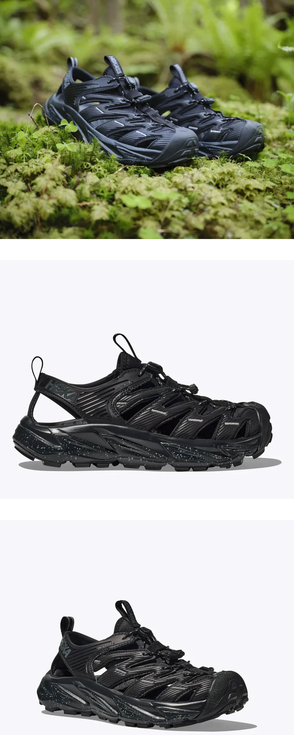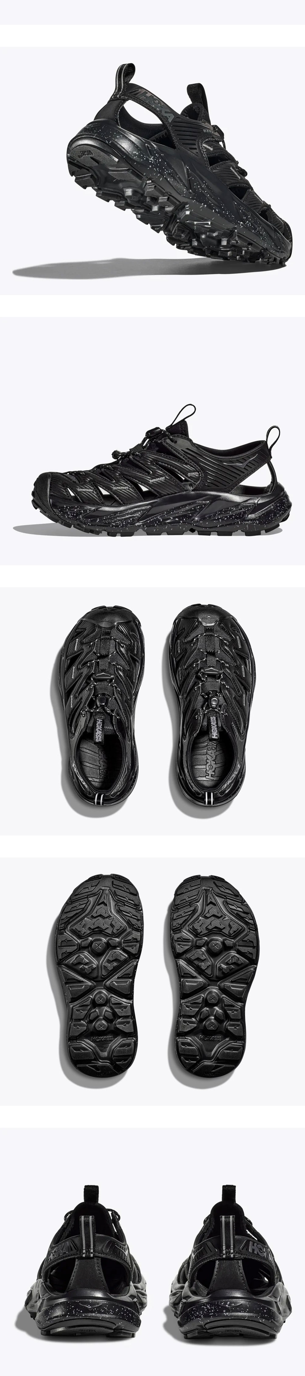 호카 호파라 블랙 캐슬락입니다. - 배수 노치가 적용된 신세틱 어퍼 및 네오프렌 패드 - 간편한 조절을 돕는 퀵 레이스 시스템 - 발가락 보호용 러버 토 캡 디테일 - 4mm 다방향 러그와 러버라이즈드 EVA 미드솔