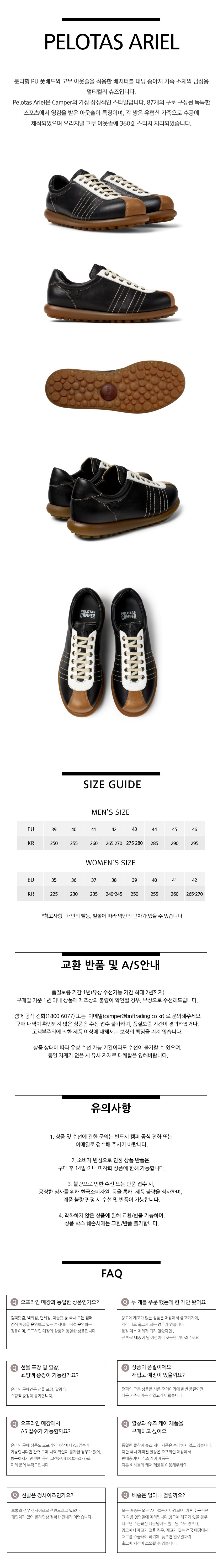 캠퍼 남성 펠로타스 아리엘 스니커즈 블랙