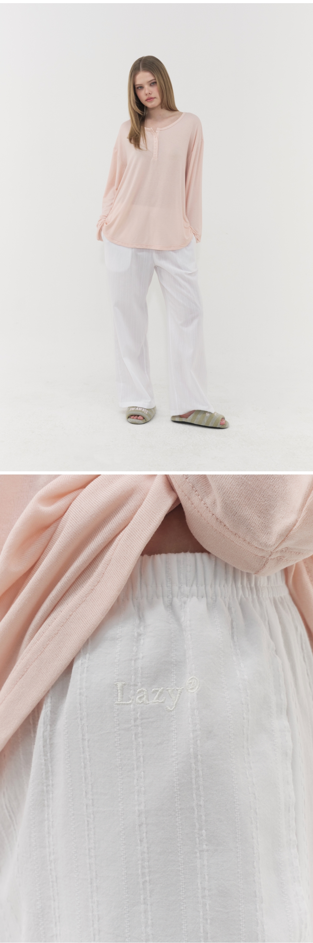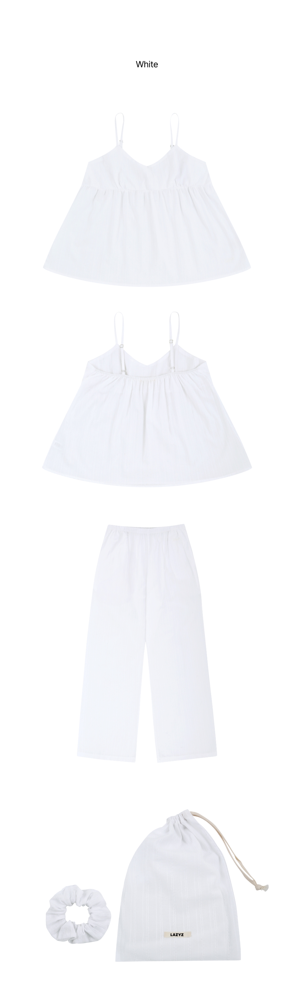 레이지지 롱 시에스타 파자마 스크런치 파우치 세트 화이트