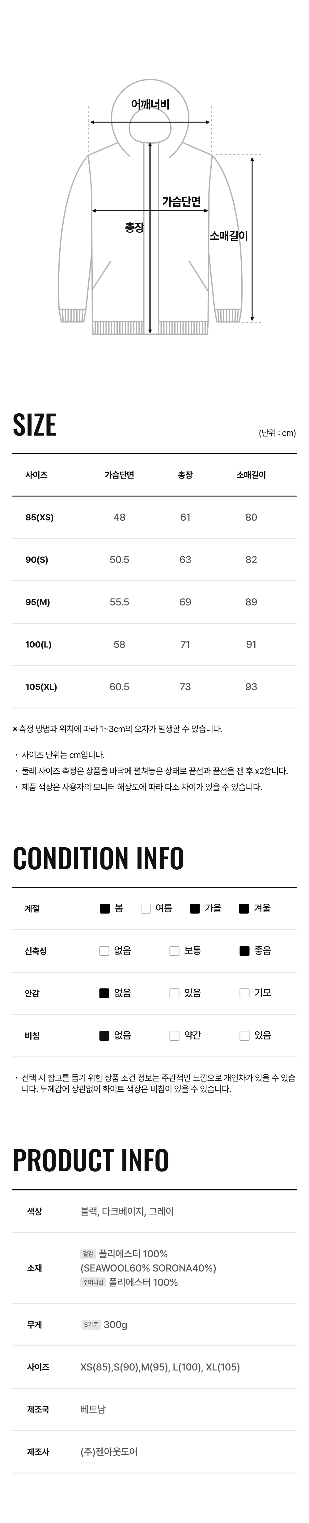 제로그램 SEAWOOL® 풀집 자켓 블랙