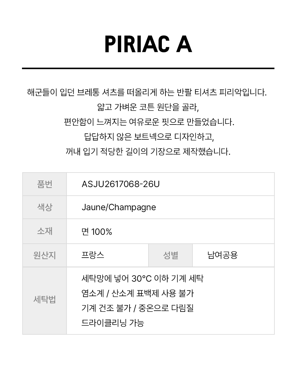 [26SS 뉴컬러] Saint James Piriac A 26U