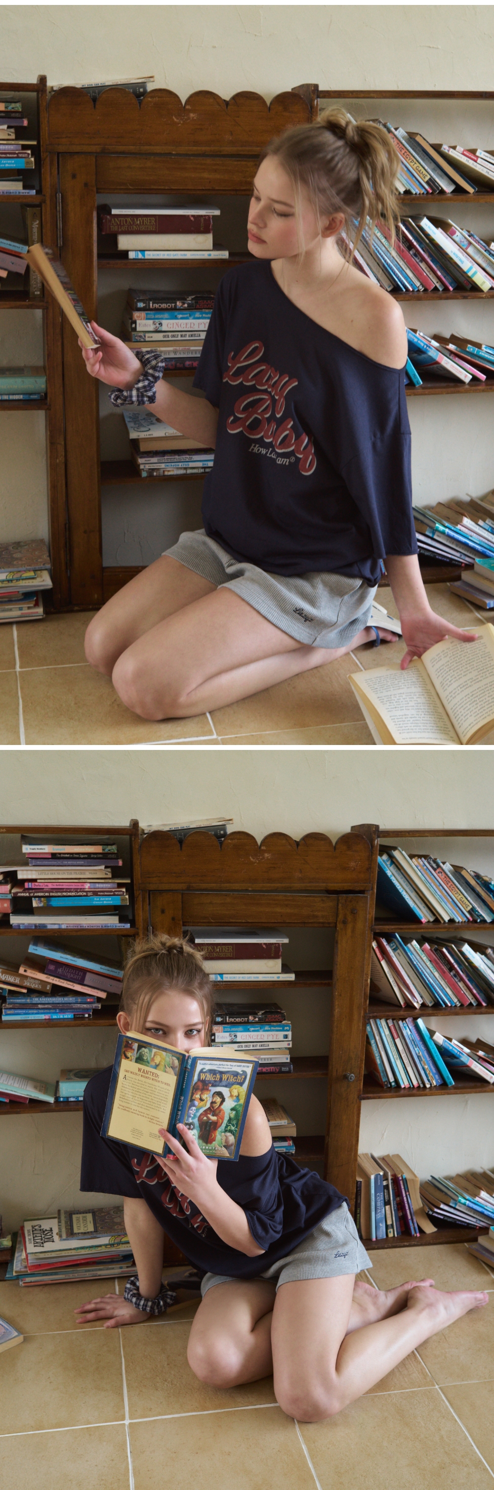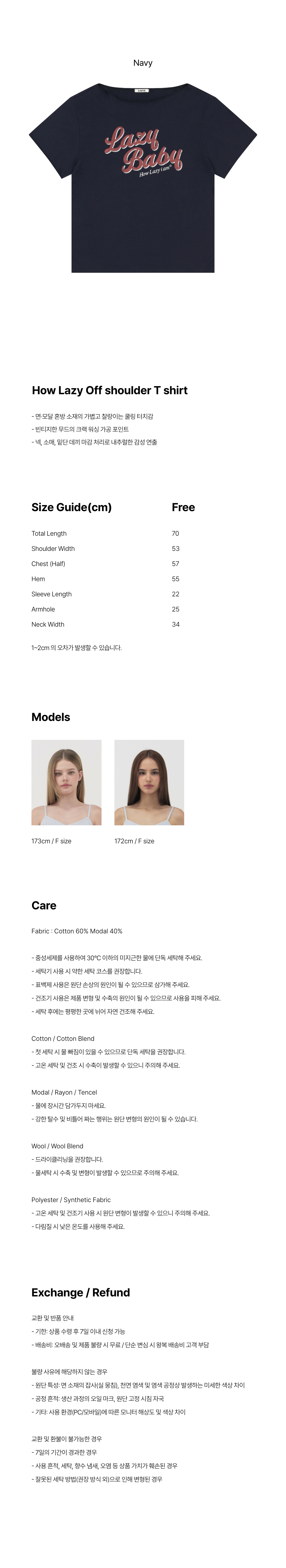 레이지지 하우 레이지 오프숄더 티셔츠 네이비