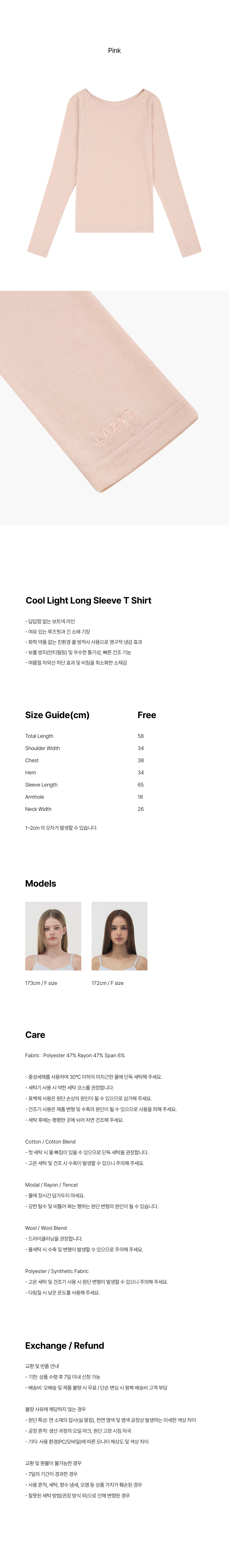 레이지지 쿨 라이트 롱 슬리브 티셔츠 핑크