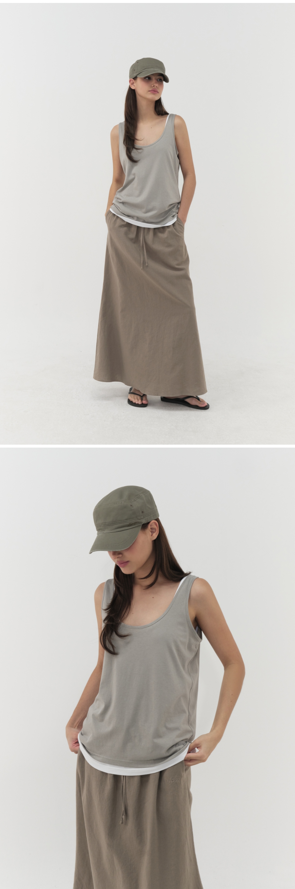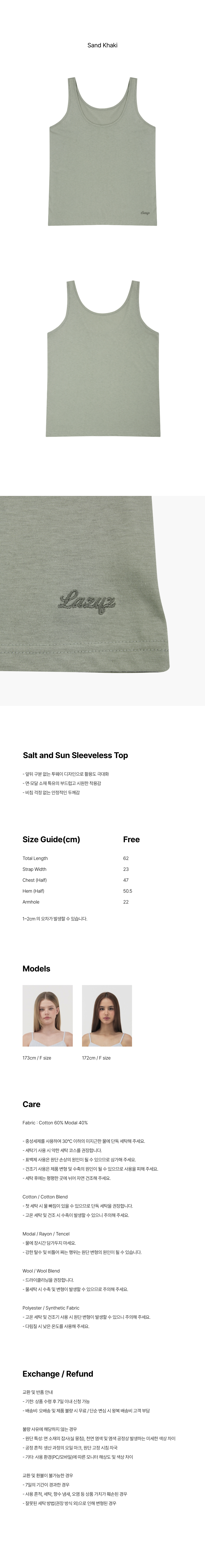 레이지지 쏠트 앤 썬 슬리브리스 탑 샌드카키