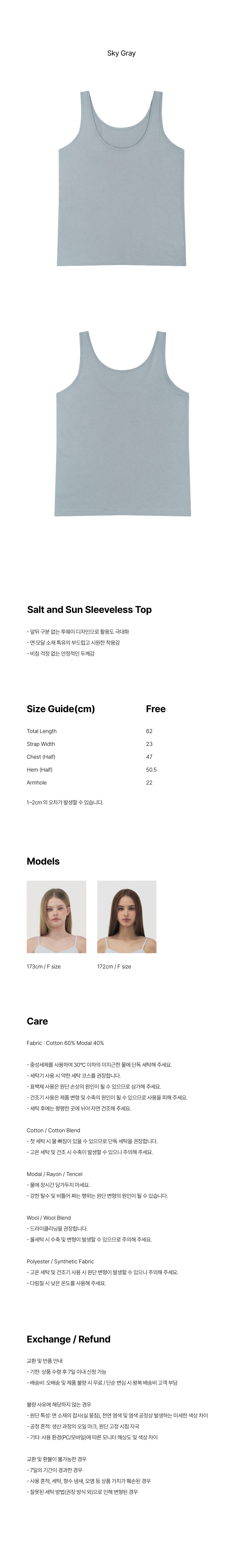 레이지지 쏠트 앤 썬 슬리브리스 탑 스카이그레이