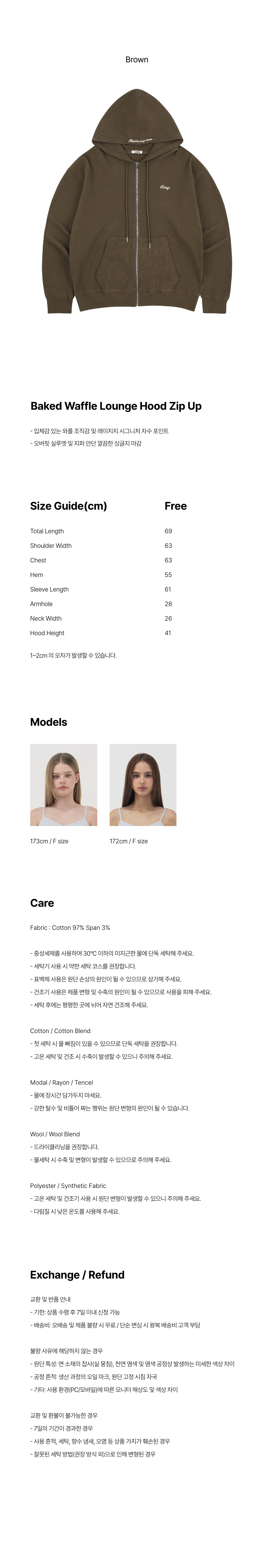 레이지지 베이크드 와플 라운지 후드 집업 브라운