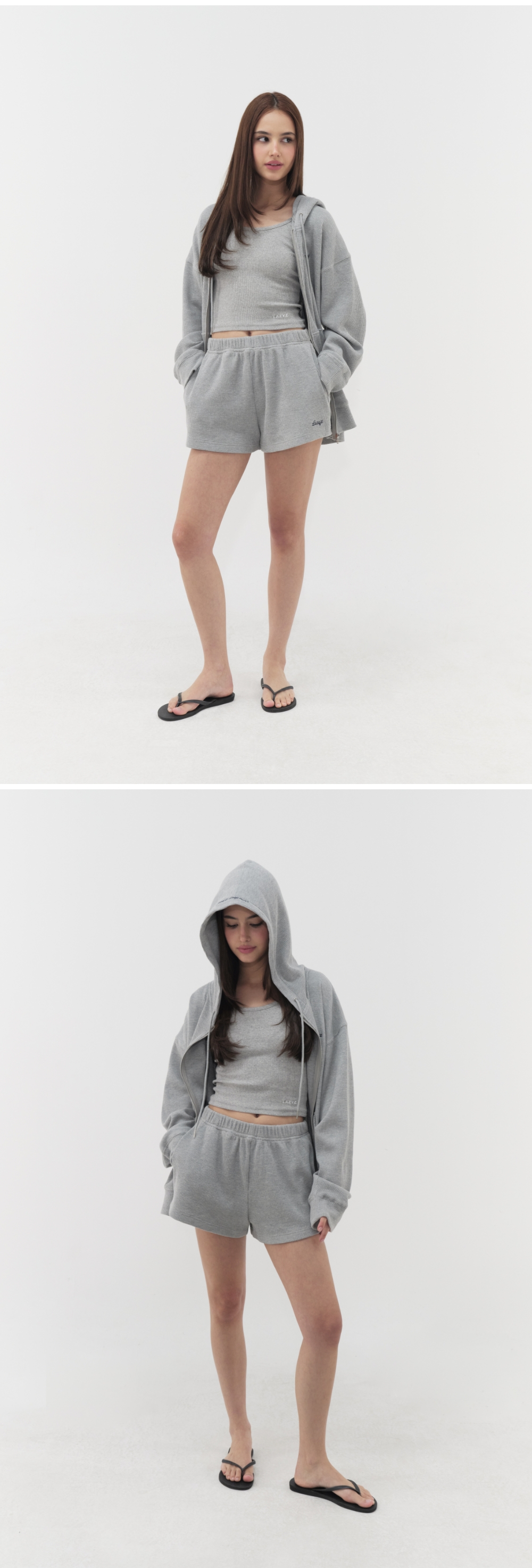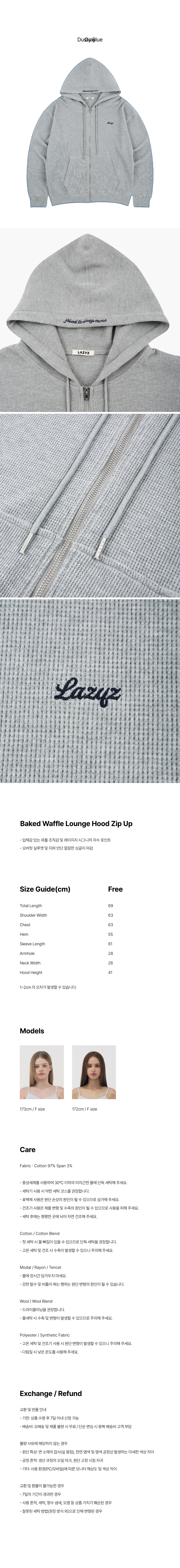 레이지지 베이크드 와플 라운지 후드 집업 그레이