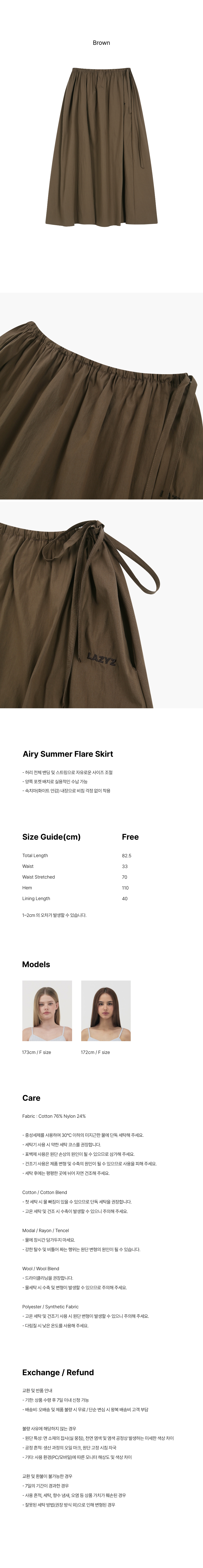 레이지지 에어리 썸머 플레어 스커트 브라운