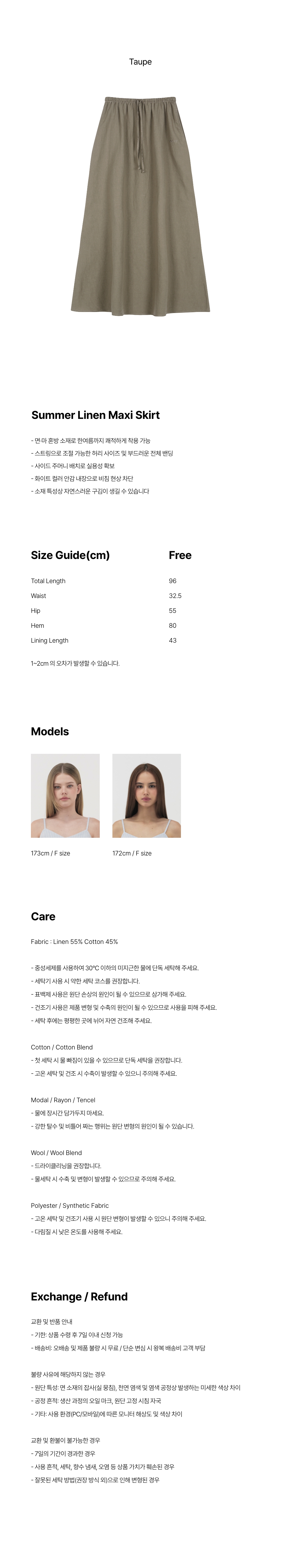 레이지지 썸머 린넨 맥시 스커트 토프