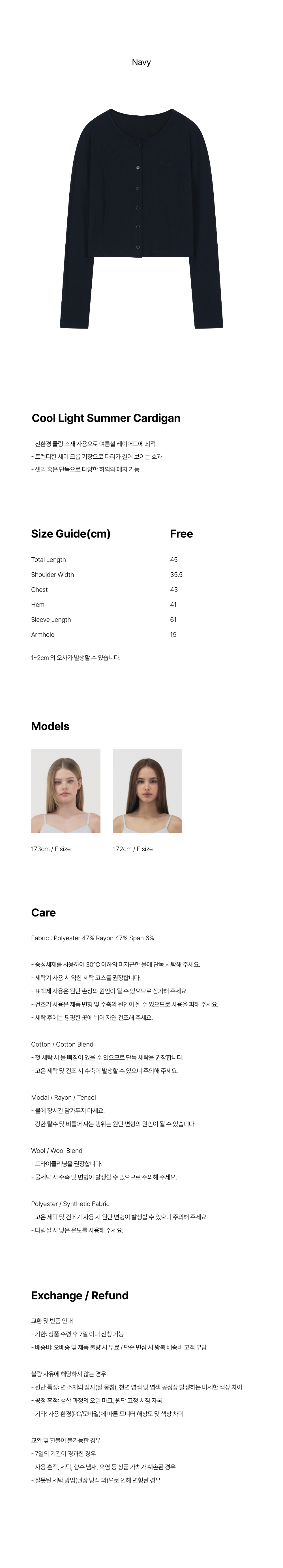 레이지지 쿨 라이트 썸머 가디건 네이비