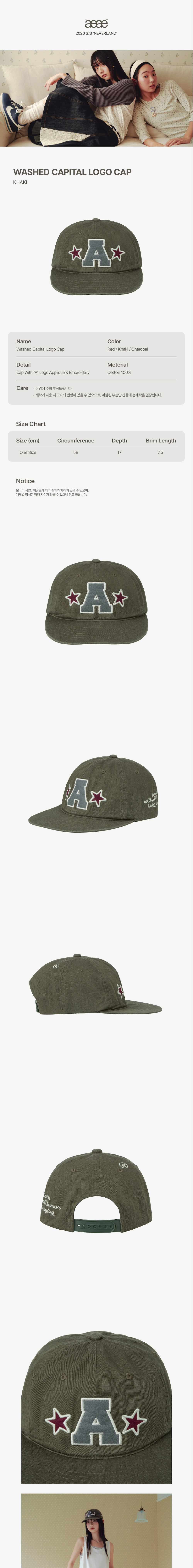 [예약 배송] 에이이에이이 워시드 캐피탈 로고 캡 카키