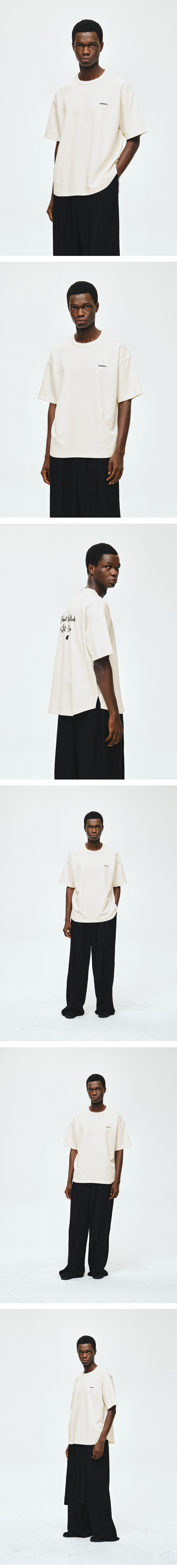 - 셈블런스 포에트리 디스트로이드 티셔츠 - 가볍지만 실루엣을 살리는 두께감의 디스트로이드 소재 - 편안하게 입을 수 있는 오버핏 실루엣과 밑단 굴림 디자인 적용 - 앞면 셈블런스 자수 디테일 - 뒷면 셈블런스 포에트리 아트워크와 고스트 와펜 디테일