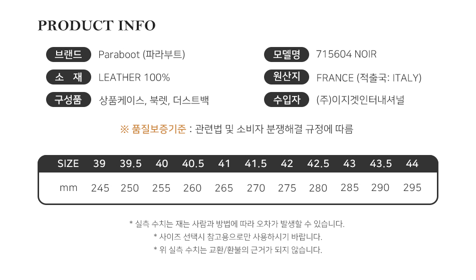 파라부트 남성 미카엘 더비슈즈 블랙 715604 NOIR
