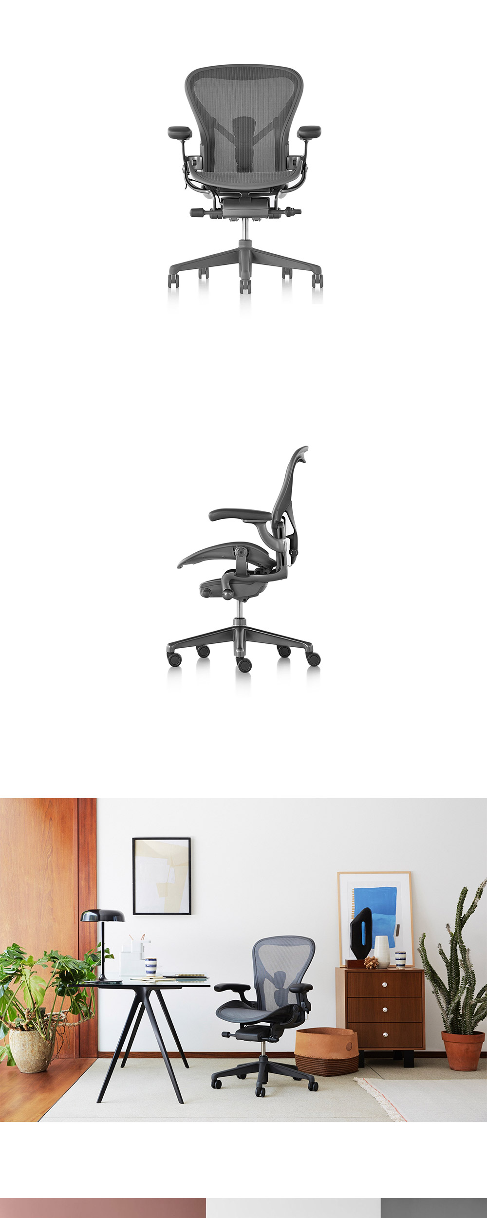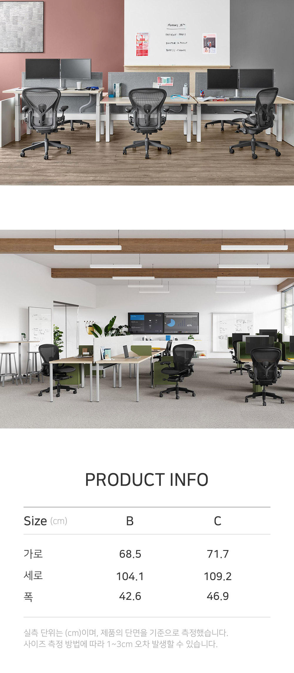 Hermanmiller제품중 세계적으로 가장 유명한 베스트셀러 Aeron chair입니다. 철저한 연구를 통해 제작된 에어론체어는 인체공학적 연구를 가구 디자인에 적용한 대표적인 제품이며, 1994년 출시되어 오늘날까지 전 세계 사무용 의자 시장의 트렌드로 자리 잡았습니다. 인체공학적인 옵션과 세련된 디자인으로 허리와 자세가 편안하도록 해주며, 특수 탄성 소재로 체중 분산은 물론 뛰어난 통기성으로 오랜시간 사용해도 편안함이 지속되는 혁신적인 소재 입니다. 좌석과 등받이에 각각 4개의 다른 탄성으로 구성되어있어 몸에 가장 편안한 착석감을 제공하며, 사용자 중심의 손쉬운 조절이 가능합니다. [Key Features] ㆍ12 year warranty ㆍ통기성이 훌륭한 시트와 등받이 ㆍ8개의 Zone으로 나누어진 정교한 설계로 자세를 바르게 유지 시켜줍니다. ㆍ팔걸이, 등받이, 시트깊이를 자유롭게 조절할 수 있습니다.