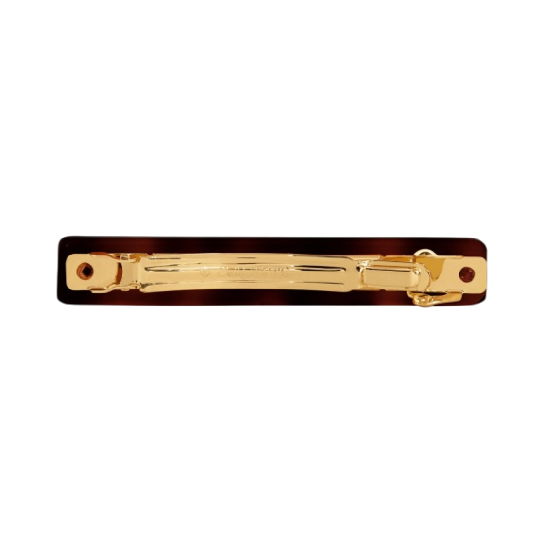 (W) Celine Triomphe Hair Clip in Acetate & Brass and Steel Dark Havana Gold