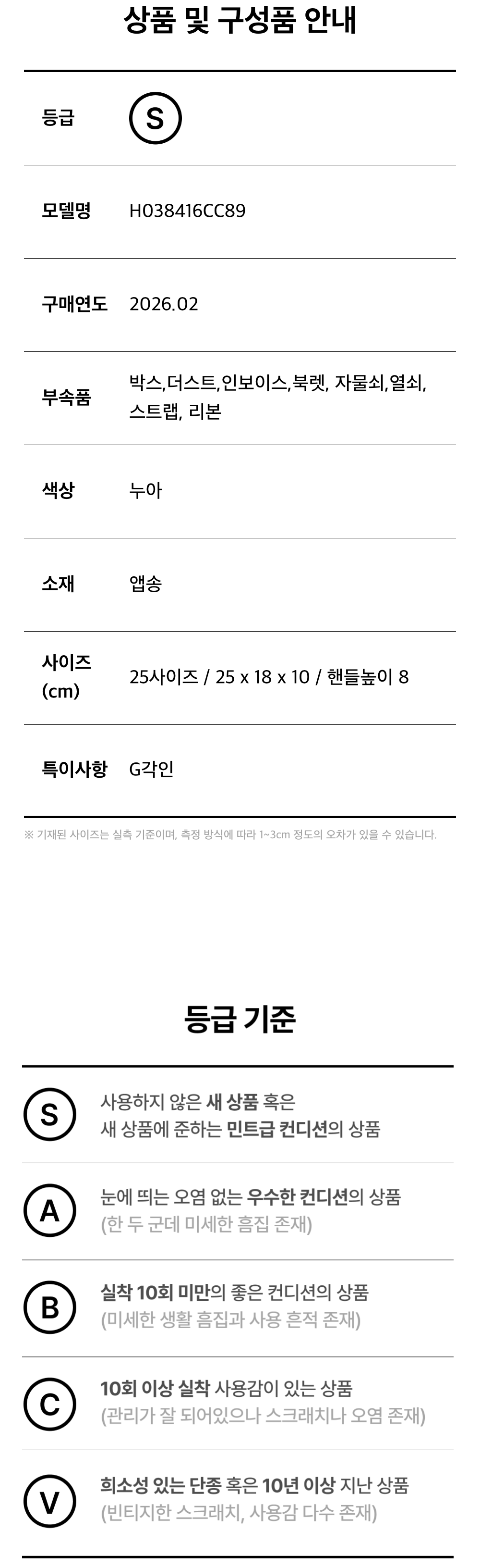 에르메스 H038416CC89 켈리 25 백 셀리에 앱송 & 골드 하드웨어 누아 G각인
