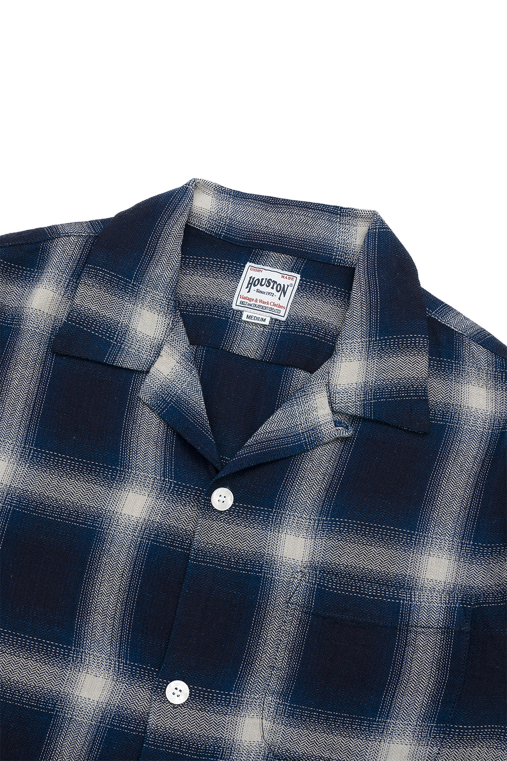 Houston Japan 41272 Indigo HB Ombre Check L/S Shirt - Indigo One Wash 인디고 헤링본 옴브레 체크 원단을 사용한 오픈카라 긴팔 셔츠입니다. 시장에서는 쉽게 볼 수 없는 희소한 원단으로, 헤링본 직조 특성상 내구성과 유연성이 뛰어나며 주름이 잘 생기지 않는 것도 장점입니다. 블리치 가공과 오버다이를 믹스해 시원한 분위기와 빈티지한 감성을 동시에 느낄 수 있는 컬러감이 특징입니다. * Cotton 100% * 빛에 의한 제품의 색감 차이가 존재 할 수 있습니다. * Made in China