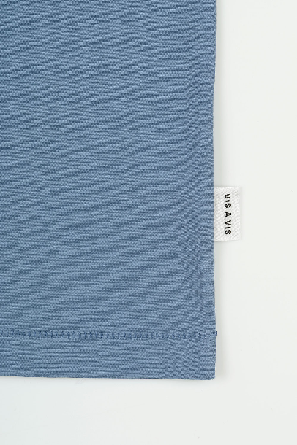 VIS A VIS Long Sleeved Tee Shirt In Cotton Double Jersey Gause Blue