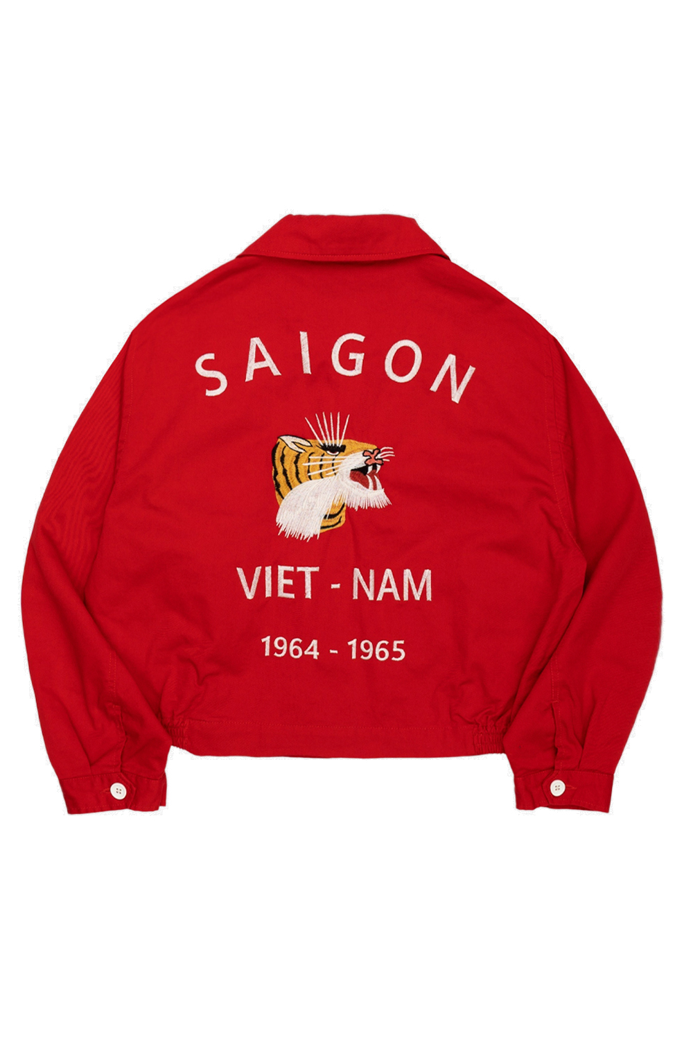 매 시즌 호평을 받아온 베트남 재킷을 쇼트 기장으로 재해석한 모델입니다. 캐주얼하면서도 세련된 분위기로 완성했습니다. 빈티지 감성의 디자인 요소를 살렸으며, 등판에는 임팩트 있는 호랑이 자수를 적용했습니다. 겉감은 코튼 트윌 원단을 사용했고, 안감에는 스트라이프 패턴의 폴리에스터 소재를 적용해 가볍고 기분 좋은 착용감을 제공합니다. * Shell : Cotton 100% * Linning : Polyester 92% / Cotton 8% * 빛에 의한 제품의 색감 차이가 존재 할 수 있습니다. * Made in China