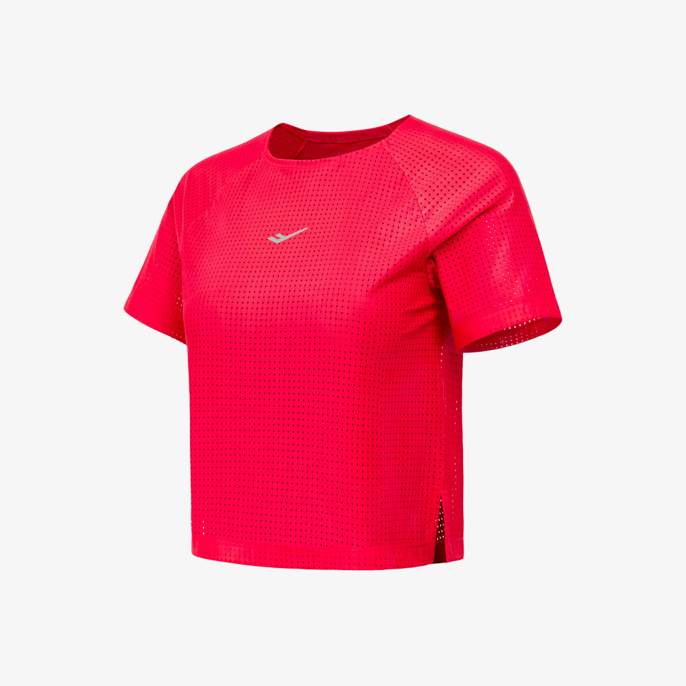 프로-스펙스 여성 울트라라이트 메쉬 크롭 반팔티셔츠 레드