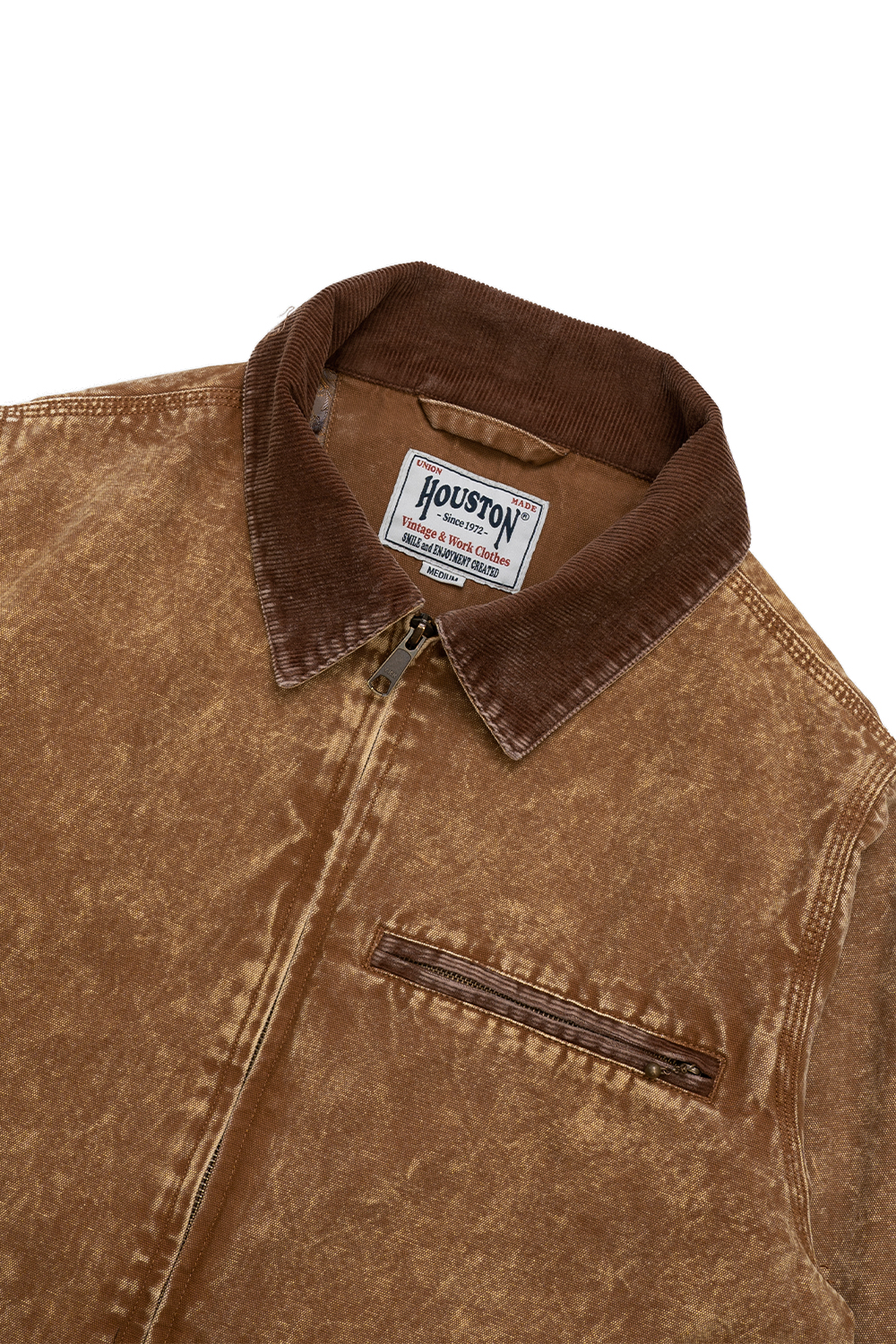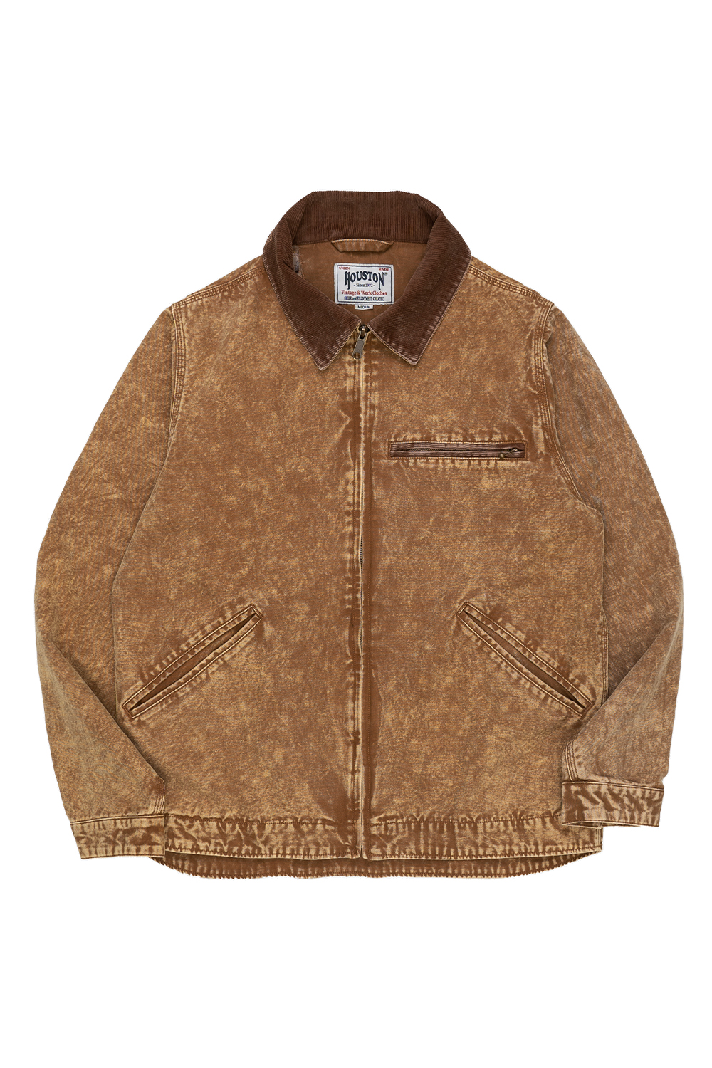 Houston Japan 51612 Fade Work Jacket - Brown 부드러운 코튼 캔버스 원단을 사용한 심플한 실루엣의 ZIP 워크 재킷입니다.. 케미컬 워시(애시드 워시) 가공을 통해 전체적으로 자연스러운 페이드감과 대비가 살아있는 워싱 질감을 재현했습니다. 착용할수록 자신만의 에이징(경년 변화)을 즐길 수 있는 제품입니다. 안감에는 고급스러운 분위기와 부드러운 촉감을 지닌 페이즐리 패턴 원단을 사용했습니다. * 가공 특성상 제품마다 색감과 질감이 조금씩 다를 수 있으니 참고 부탁드립니다. * Shell : Cotton 100% * Linning : Polyester 55% / Rayon 45% * 빛에 의한 제품의 색감 차이가 존재 할 수 있습니다. * Made in China