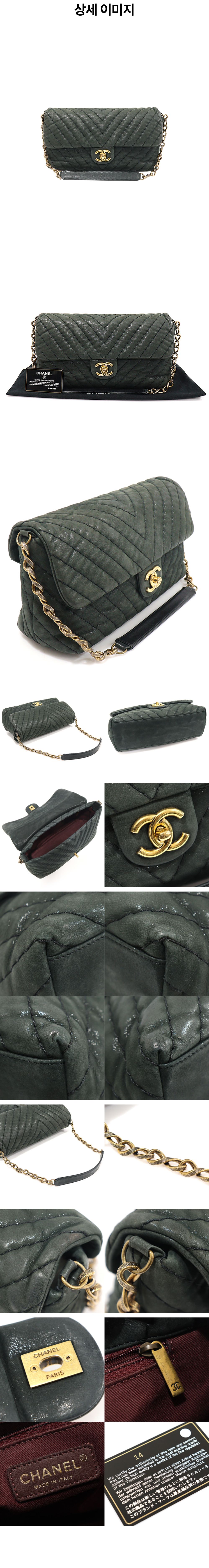 샤넬 A50676 다크 그린 쉐브론 이리디센트 레더 Surpique CC 플랩 숄더백 (14번대)