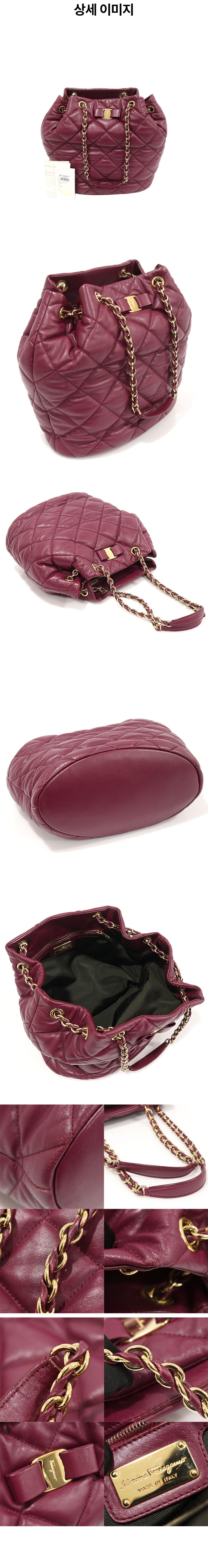 페라가모 21 E974 버건디 나파 퀄팅 바라 보우 제니 버킷 숄더백