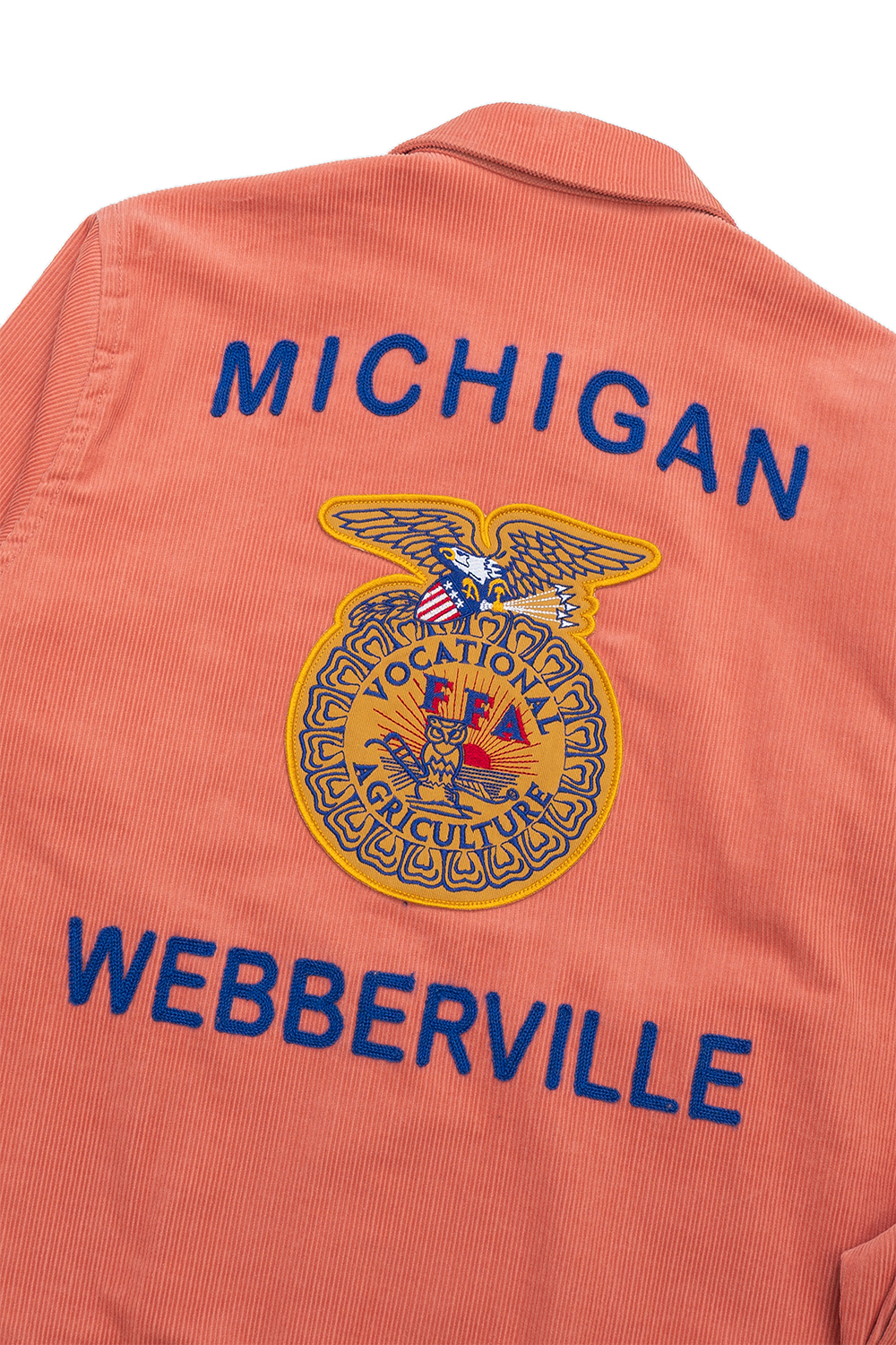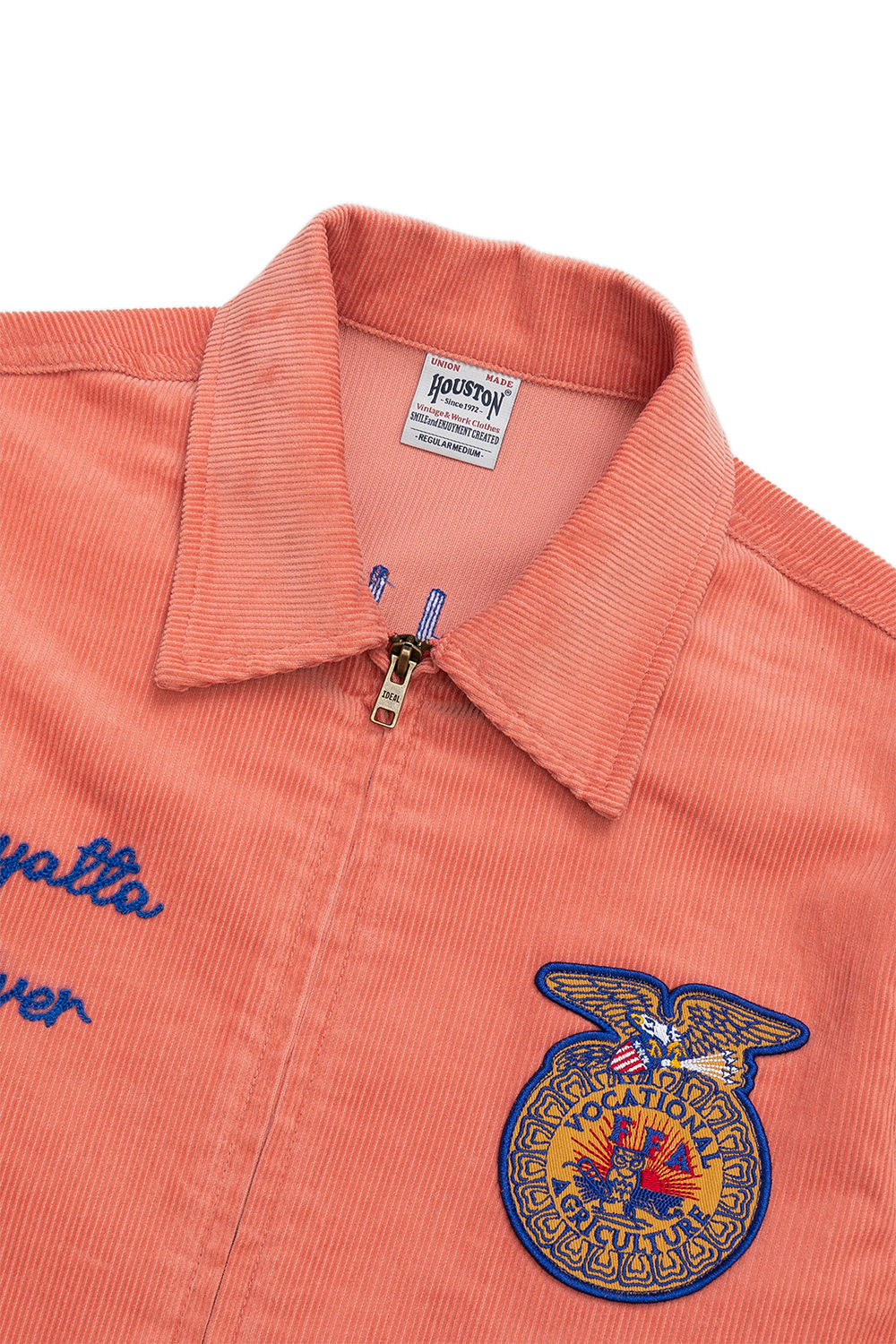 Houston Japan 51596 Corduroy FFA Jacket - Pink 12 웨일의 가는 코듀로이를 사용한 자수 재킷입니다. 장식에는 FFA(Future Farmers Agriculture)의 약자로, 미국 농업 국립학교의 유니폼을 샘플링했습니다. 앞면/뒷면에는 자수가 놓여져 있습니다. 안감이 없는 제품으로 S/S 시즌에 입기 좋은 제품입니다. 빈티지 시장에서 이 FFA재킷은 인기가 급증하고 있고 수요보다 공급이 못미쳐 고갈화가 진행되어 가격이 급등해 오고 있습니다. HOUSTON 오리지널 모델입니다. *Cotton 100% * 빛에 의한 제품의 색감 차이가 존재 할 수 있습니다. * Made in China