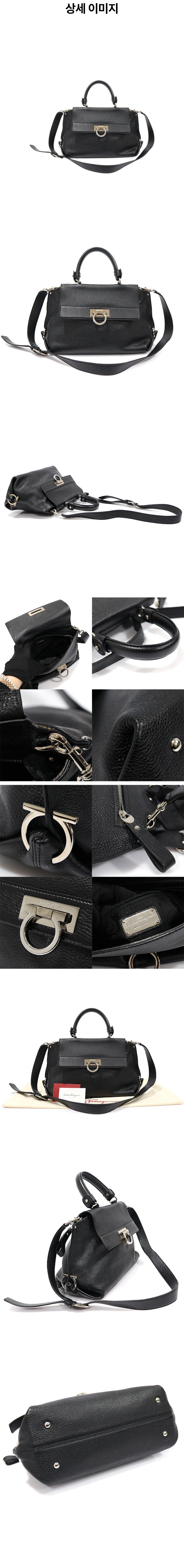 페라가모 21 A896 블랙 카프스킨 은장 간치니 소피아 스몰 2WAY