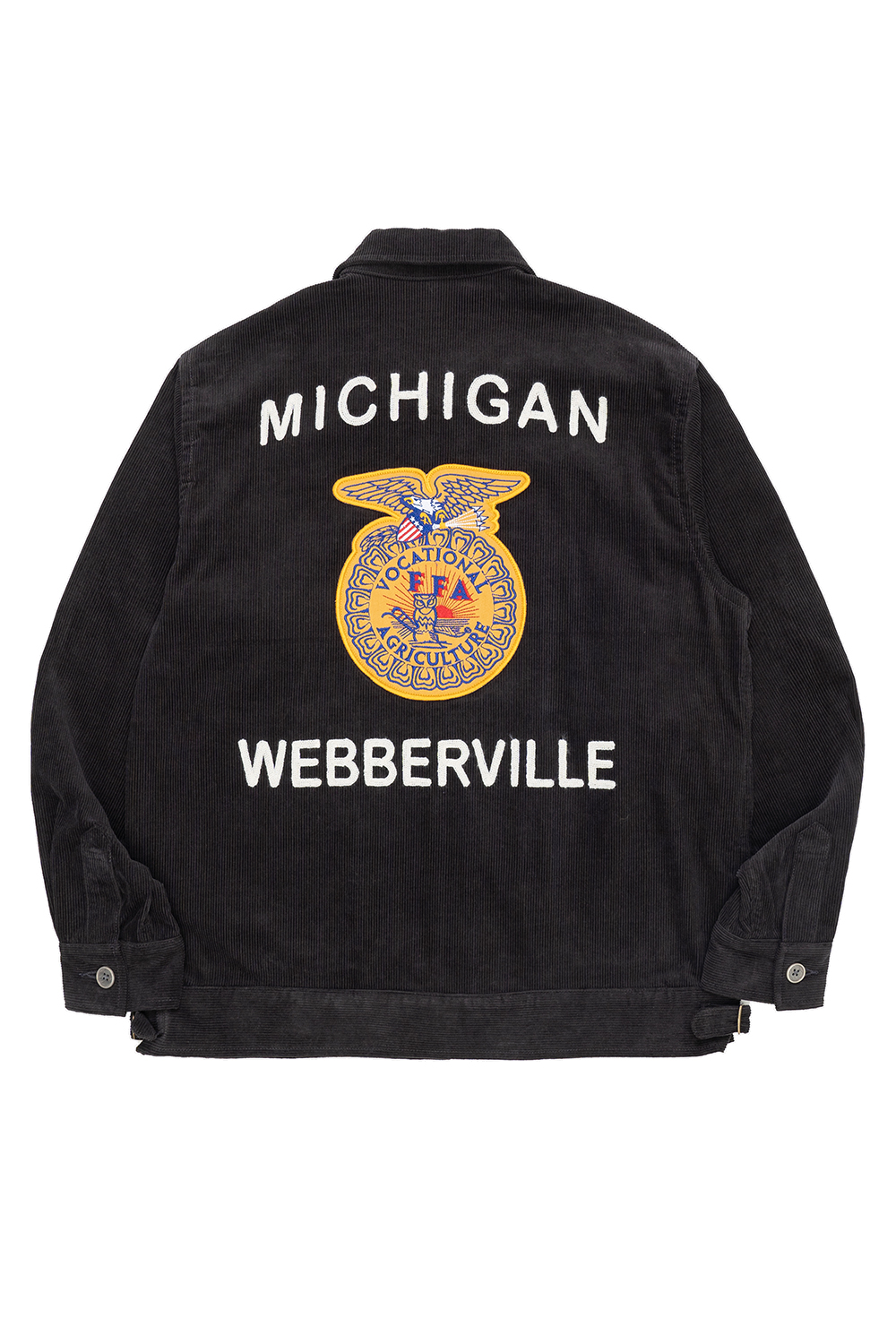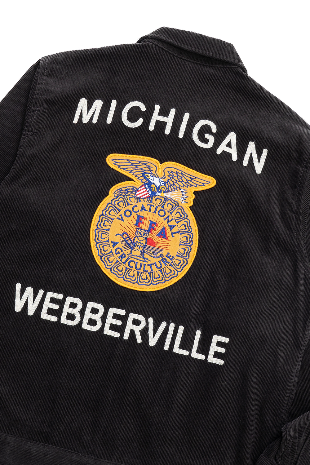 Houston Japan 51596 Corduroy FFA Jacket - Charcoal 12 웨일의 가는 코듀로이를 사용한 자수 재킷입니다. 장식에는 FFA(Future Farmers Agriculture)의 약자로, 미국 농업 국립학교의 유니폼을 샘플링했습니다. 앞면/뒷면에는 자수가 놓여져 있습니다. 안감이 없는 제품으로 S/S 시즌에 입기 좋은 제품입니다. 빈티지 시장에서 이 FFA재킷은 인기가 급증하고 있고 수요보다 공급이 못미쳐 고갈화가 진행되어 가격이 급등해 오고 있습니다. HOUSTON 오리지널 모델입니다. *Cotton 100%
